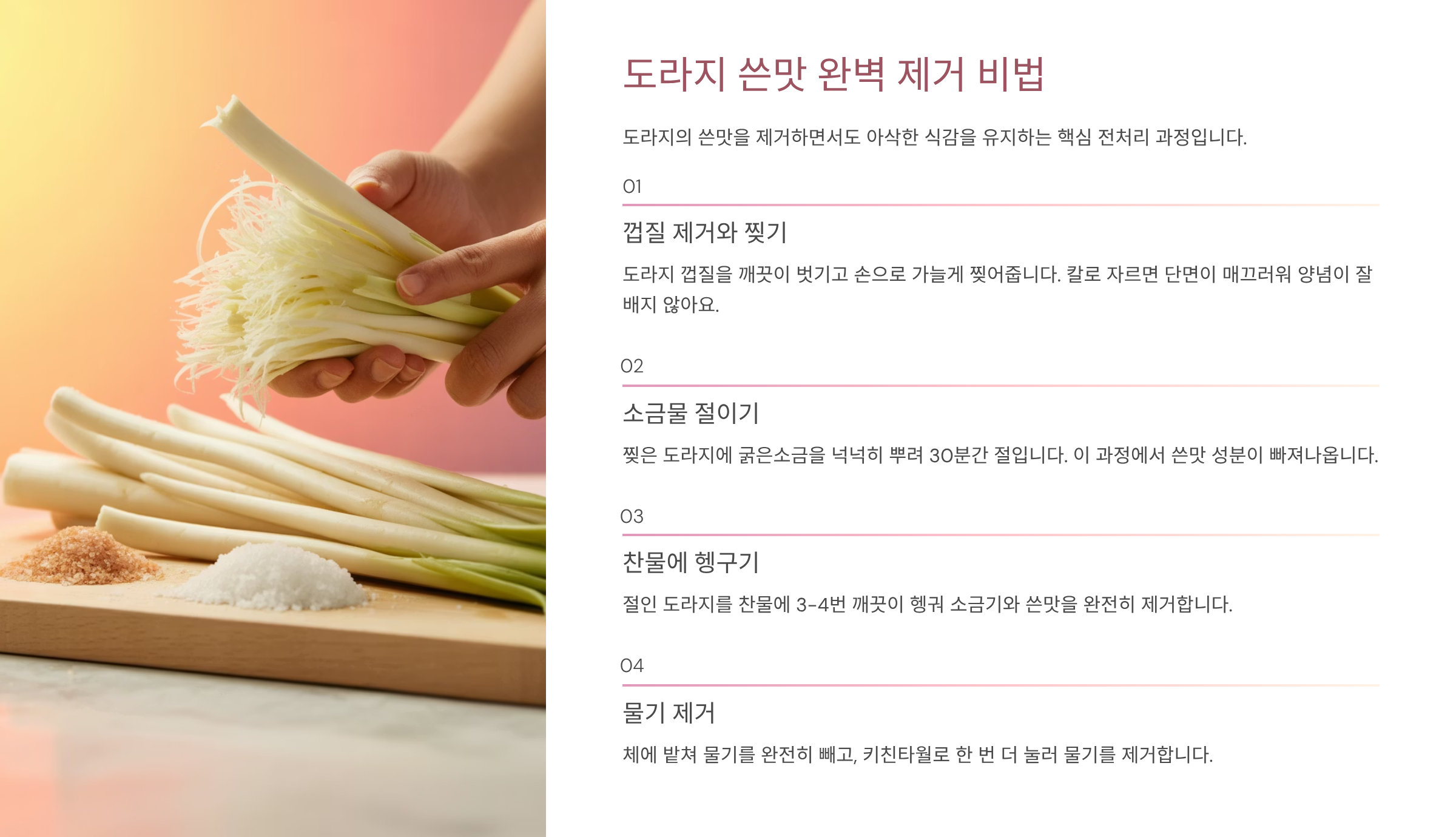 도라지무침 황금 레시피: 쓴맛 완벽 제거와 실패 없는 황금 양념 비율