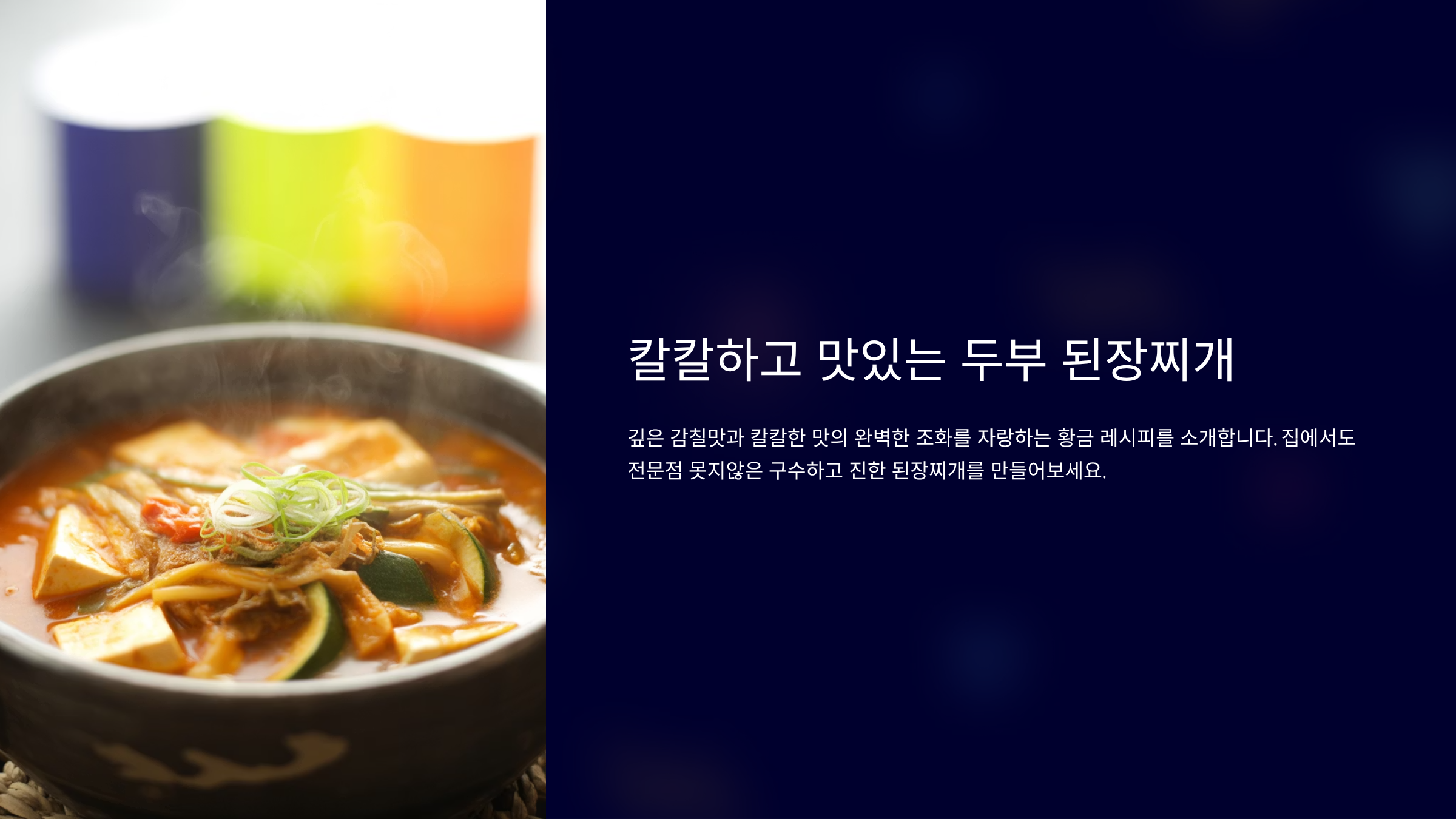 두부 된장찌개는 한국인의 식탁에서 빠질 수 없는 대표적인 소울 푸드입니다. 하지만 맹물 맛이 나거나, 너무 짜거나, 혹은 얼큰함이 부족해 아쉬움을 느꼈던 경험이 있으실 겁니다. 이 글은 구수한 전통의 맛은 살리면서도 목을 탁 치는 칼칼한 매력을 더해줄 전문적인 황금 레시피를 제공합니다. 단순한 레시피 나열을 넘어, 구글의 EEAT 기준을 충족시키기 위해 검증된 재료의 선택, 육수의 깊이, 양념의 황금비율 등 모든 요리 과정에 숨겨진 과학적 원리를 쉽게 풀어 설명합니다. 오늘부터 당신의 된장찌개는 평범함을 벗어나 최고의 명품 찌개로 거듭날 것입니다. 이제부터 시작되는 된장찌개 마스터 클래스에 집중해 주세요. 실패 없는 최고의 맛을 약속드립니다.