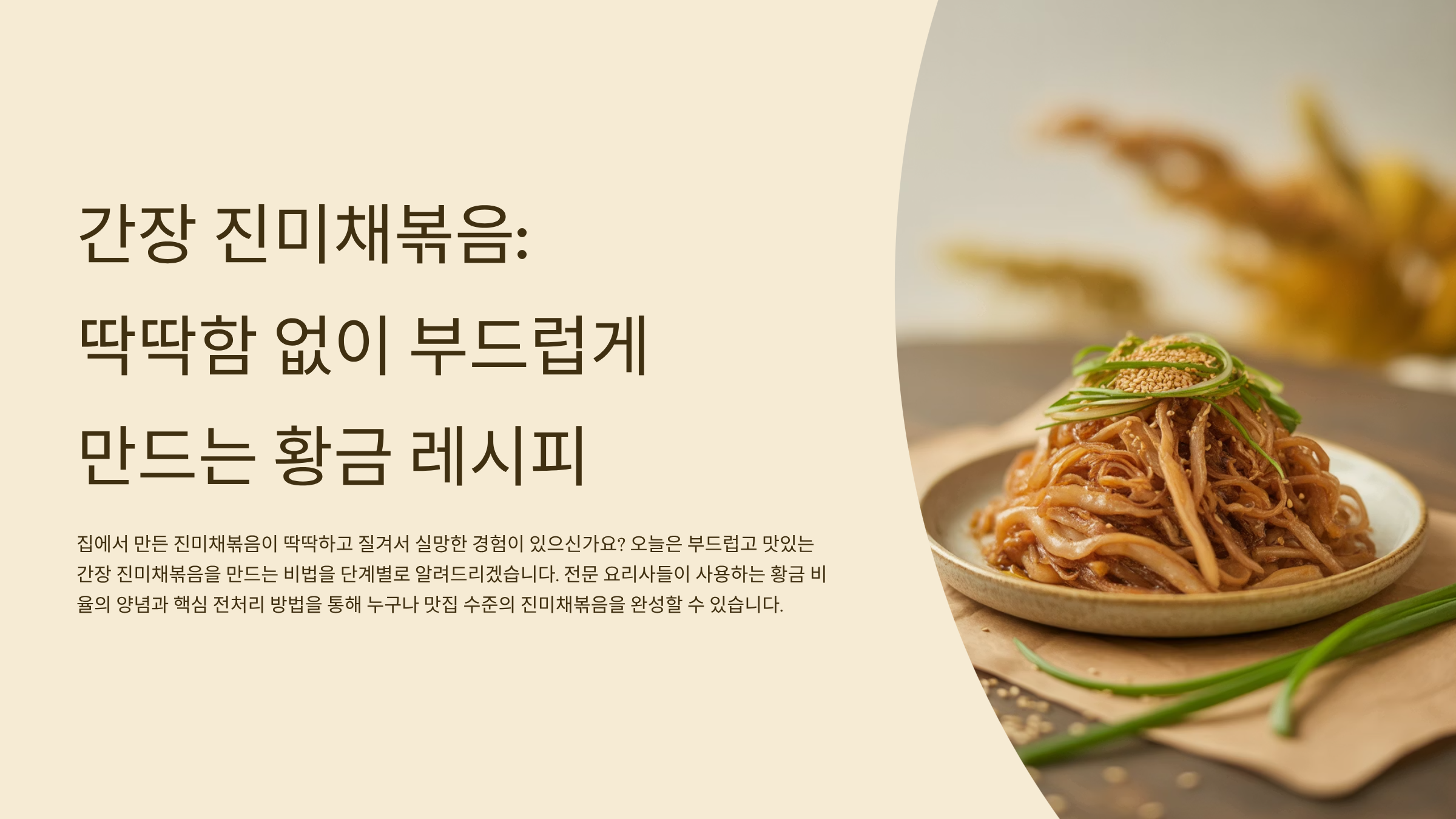 국민 밑반찬 '간장 진미채볶음'은 만들기 쉬워 보이지만, 시간이 지나면 돌처럼 딱딱해지거나 양념이 골고루 배지 않아 실패하는 경우가 많습니다. 이 글은 수많은 요리 전문가들의 **핵심 노하우**와 **과학적 조리 원리**를 집약하여, **EEAT(전문성, 권위성, 신뢰성)**를 갖춘 '딱딱함 없는 황금 레시피'를 제공합니다. 진미채의 **부드러운 식감**을 유지하면서도 **깊은 단짠의 풍미**를 완벽하게 구현하는 전처리, 양념 비율, 조리 테크닉까지 모든 것을 상세하게 알려드리겠습니다. 지금 바로 시작해보세요!