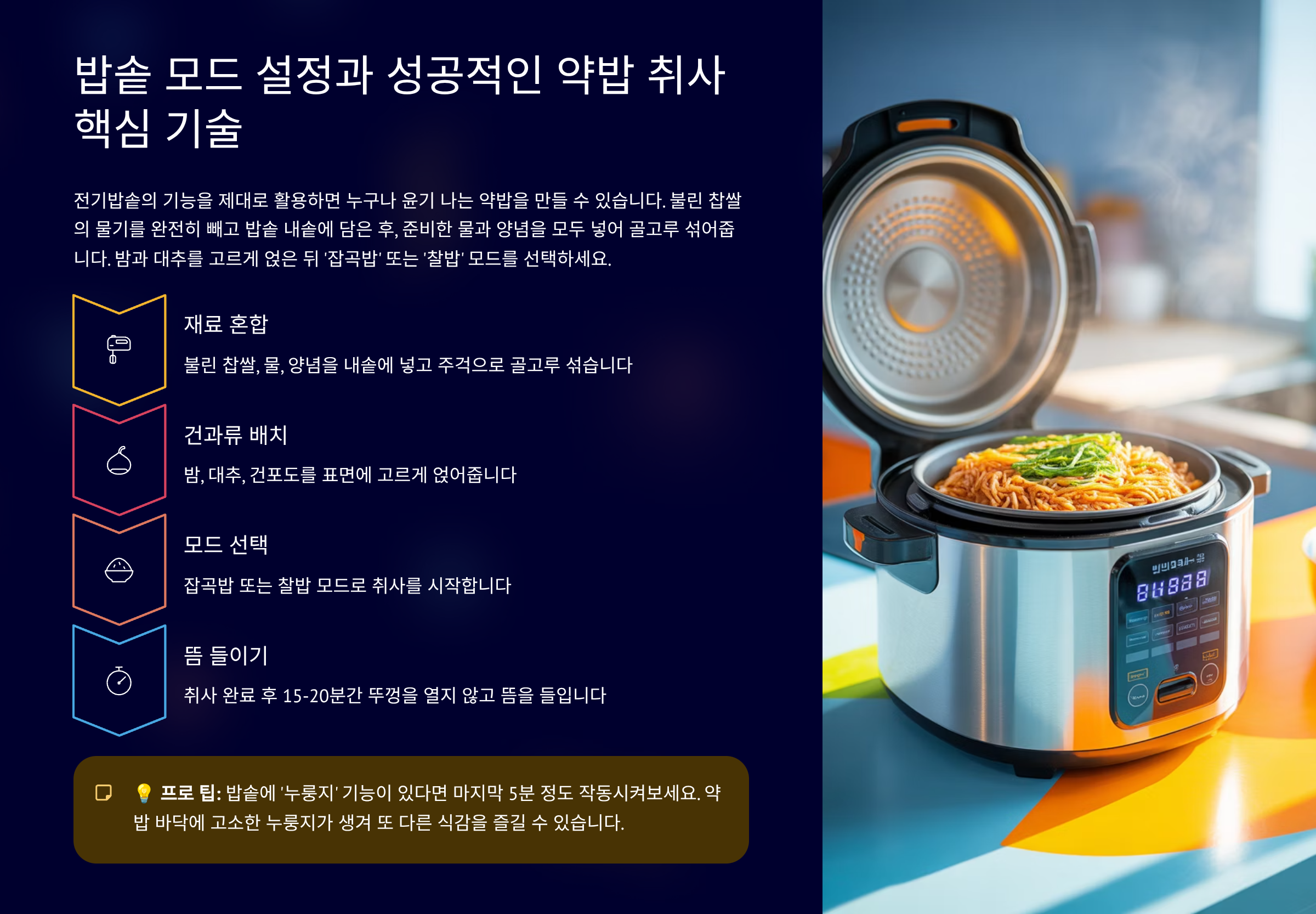 3. 밥솥 모드 설정과 성공적인 약밥 취사 핵심 기술 🍚