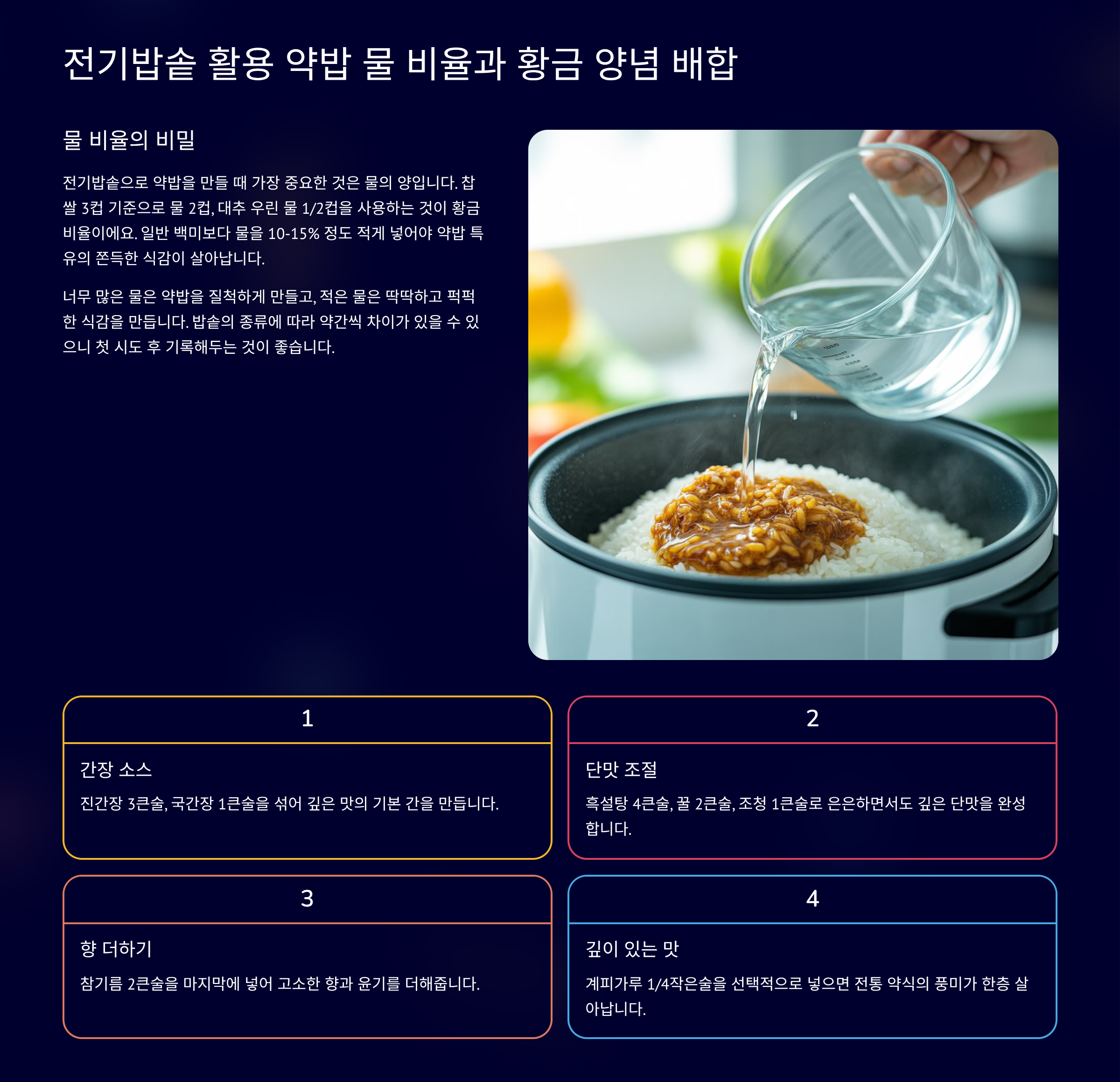 2. 전기밥솥 활용 약밥 물 비율과 황금 양념 배합 📝