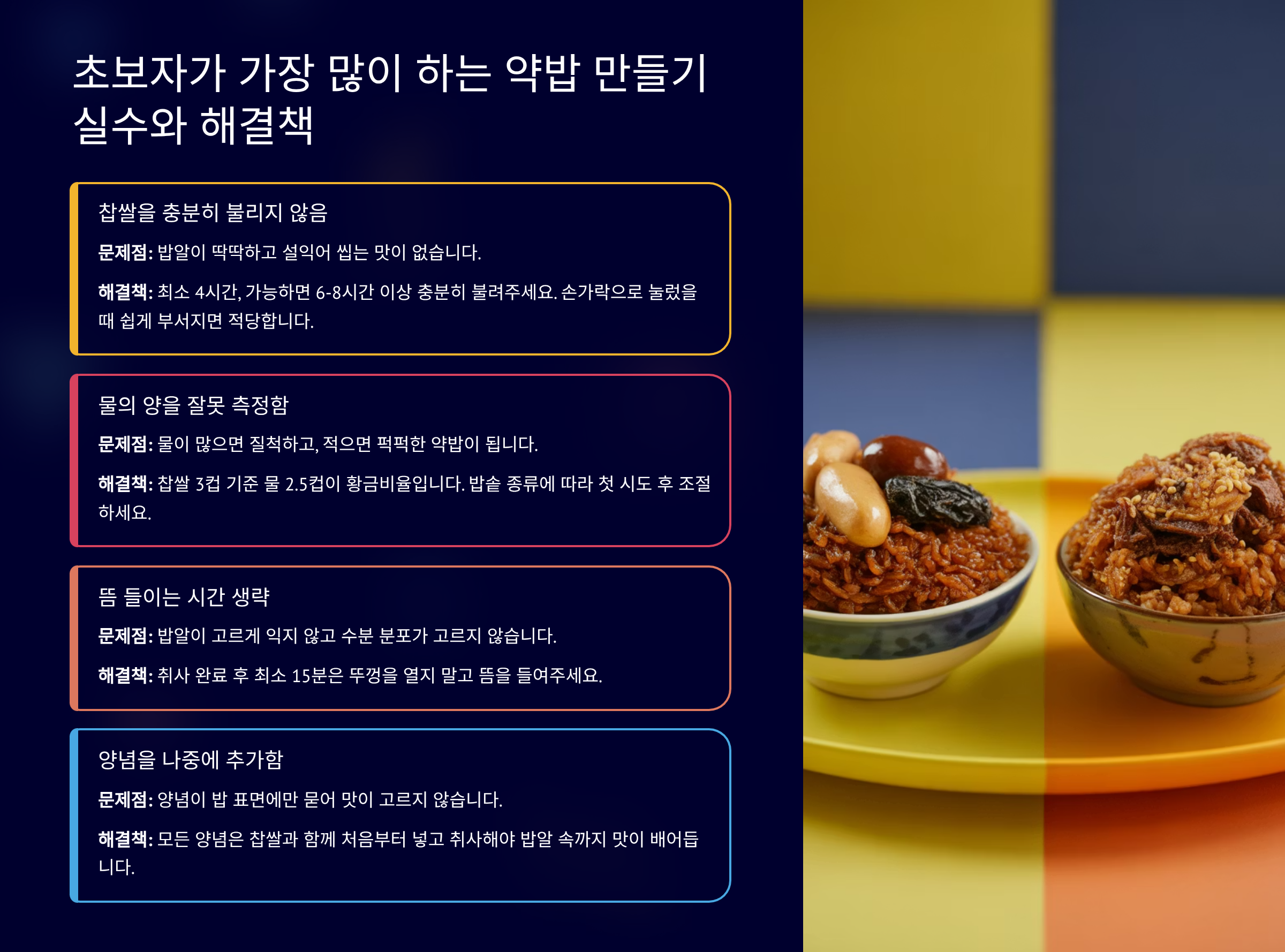6. 초보자가 가장 많이 하는 약밥 만들기 실수와 해결책 ⚠️