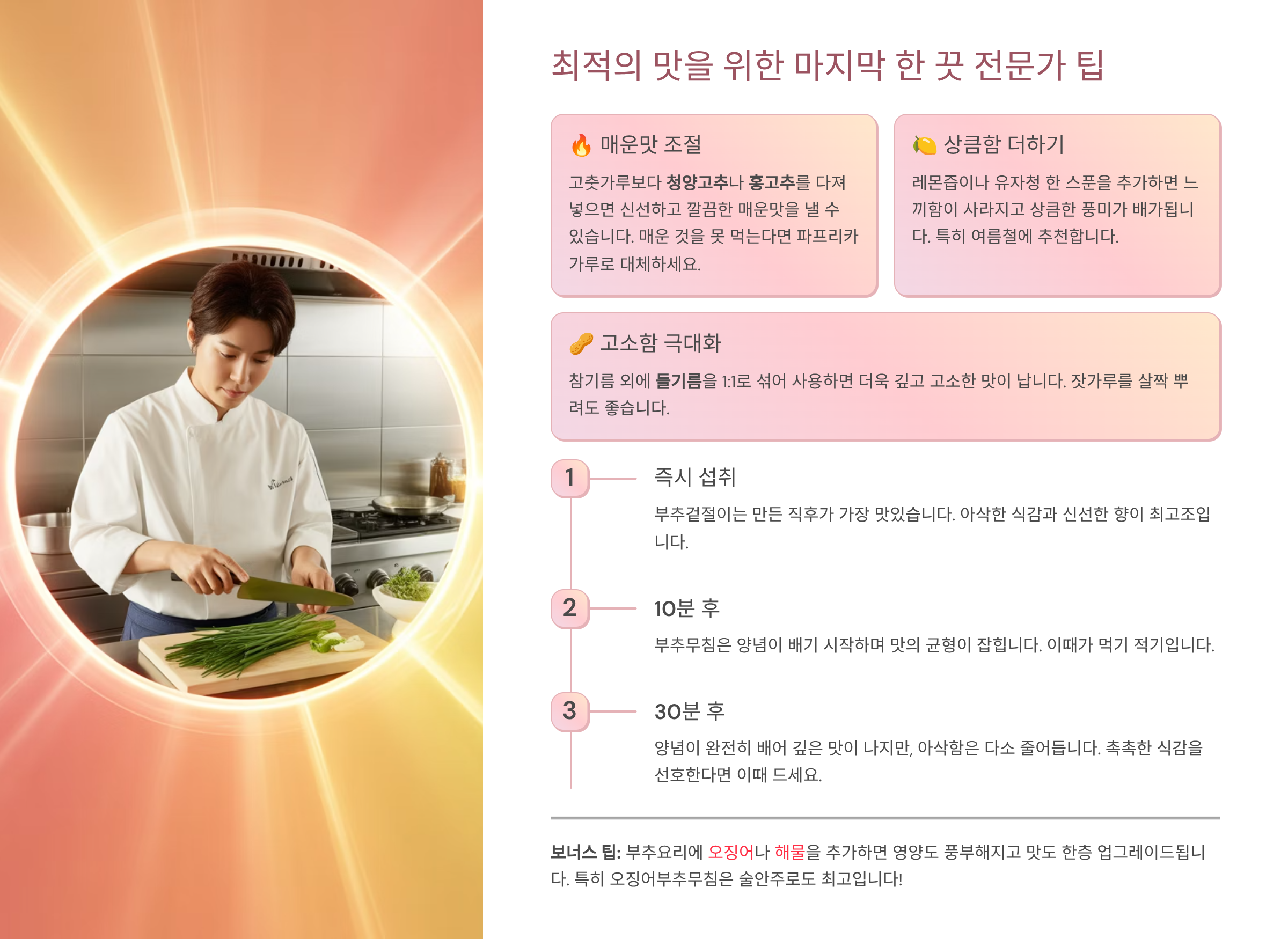 이제 여러분의 부추 요리는 단순한 반찬이 아닌, 과학적인 전문 요리가 됩니다.