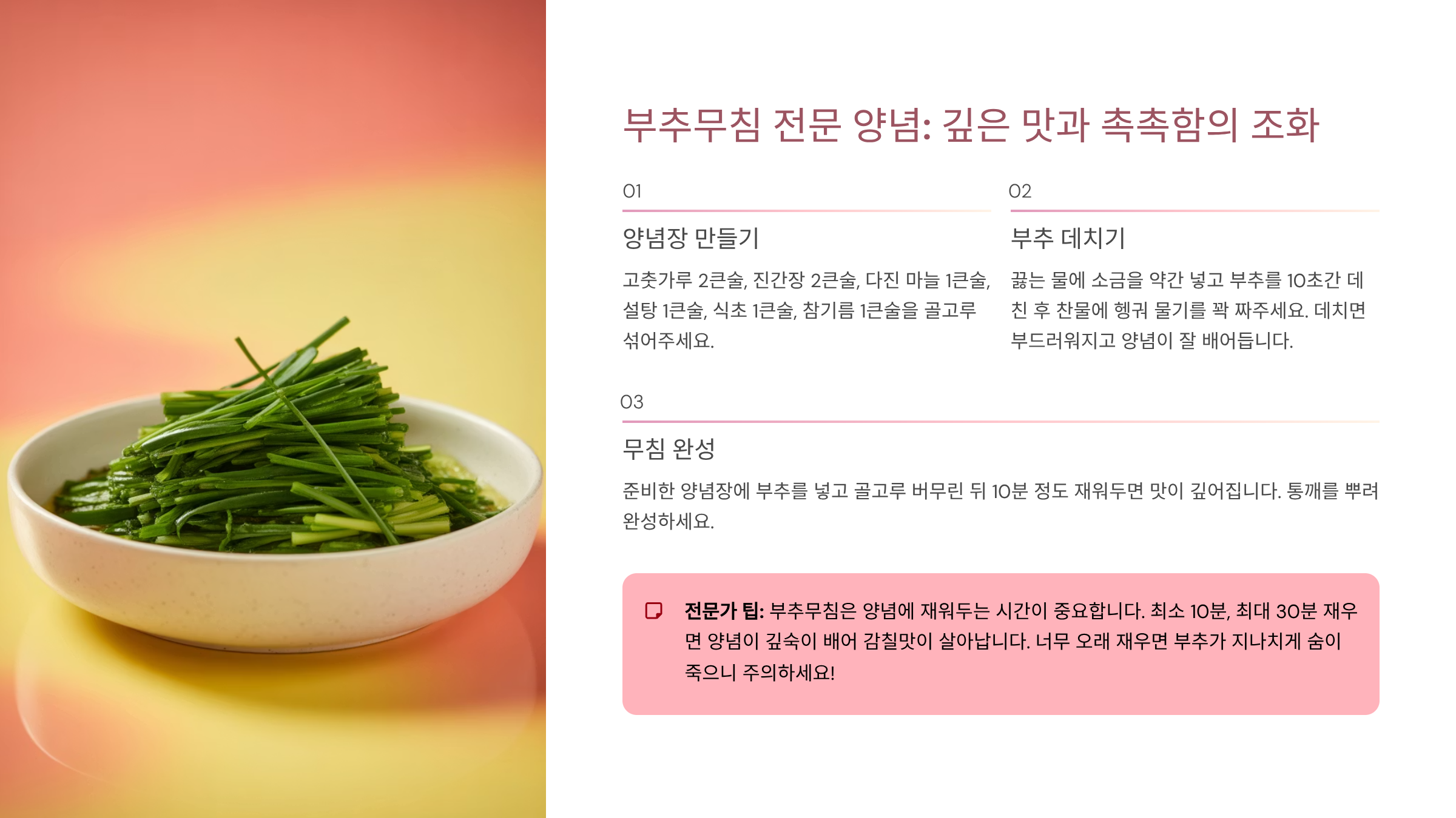 부추무침 전문 양념: '깊은 맛'과 '촉촉함'의 조화 ✨