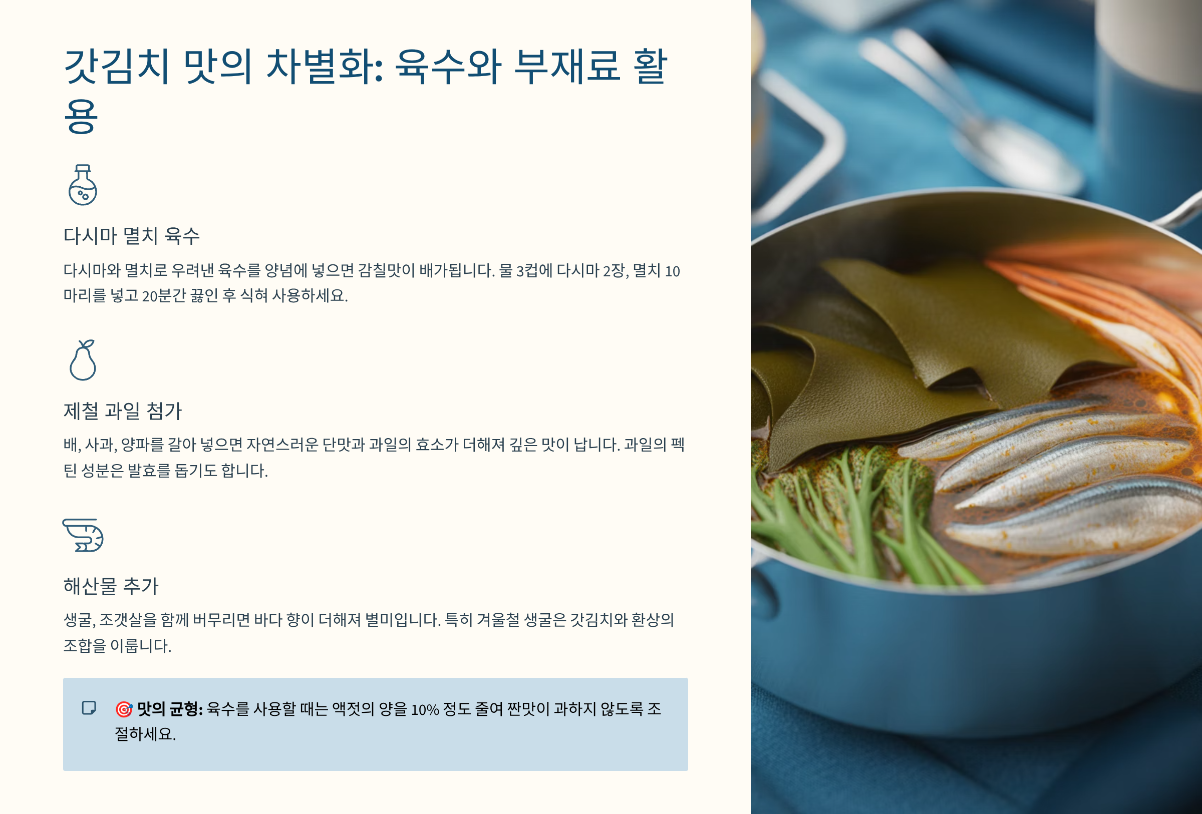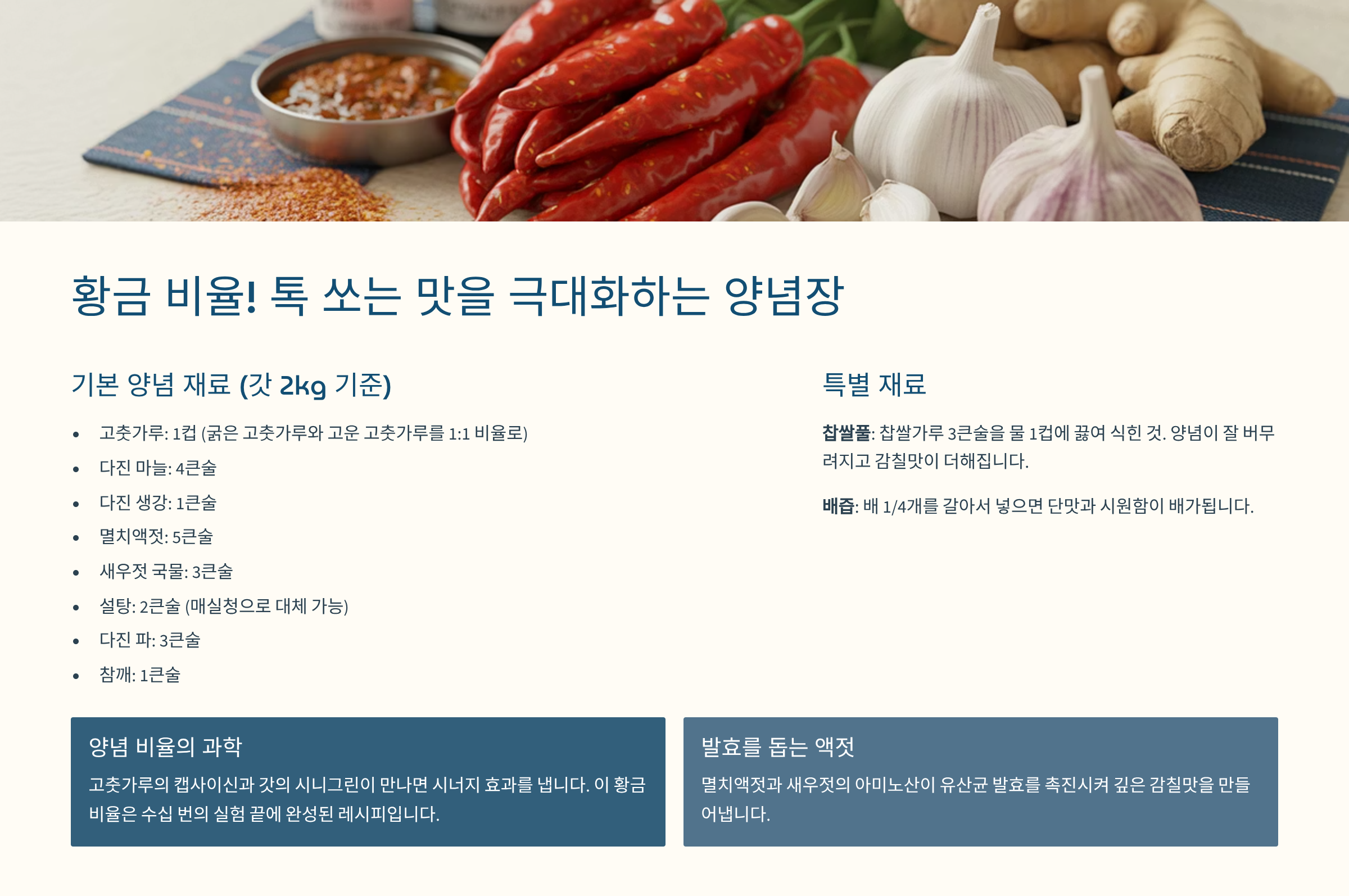 사용자 경험 강조: 액젓과 찹쌀풀로 감칠맛과 발효 안정성을 동시에 확보