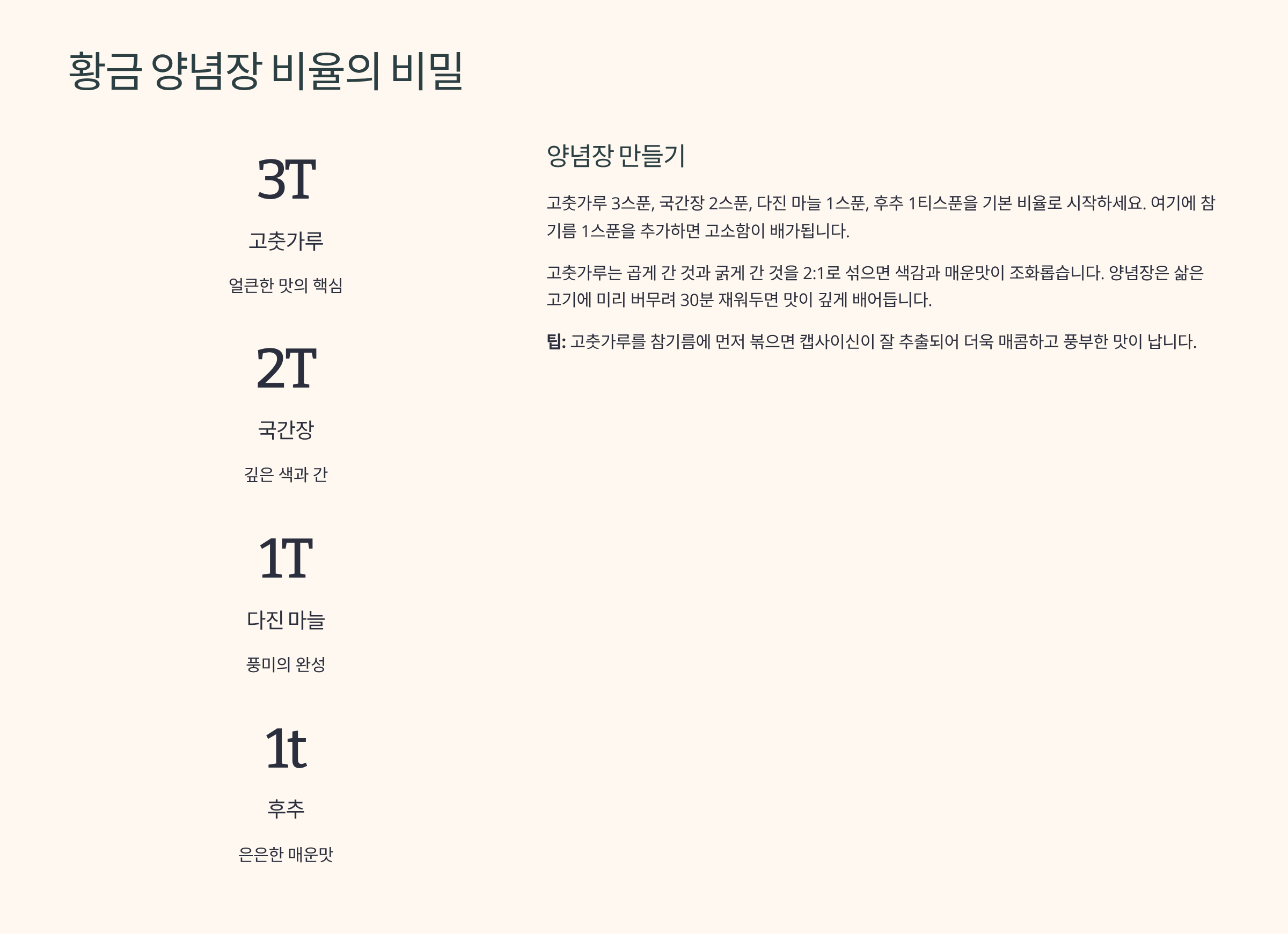 4. 황금 양념장 비율: 얼큰함과 감칠맛을 동시에 잡는 마스터키 🌶️