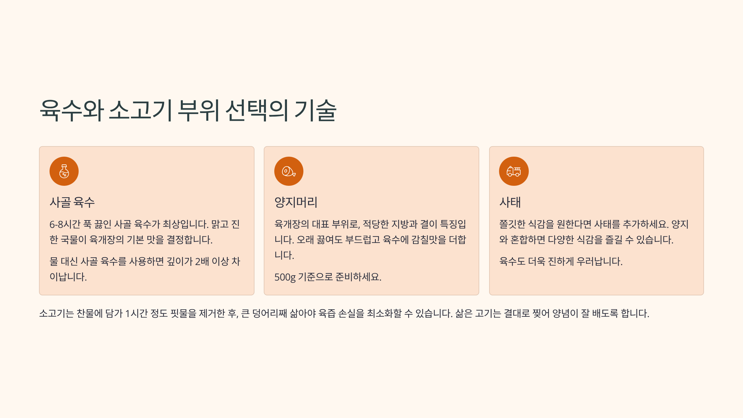 2. 깊은 맛의 핵심, '사골 육수'와 '소고기 부위' 선택의 기술 🥩