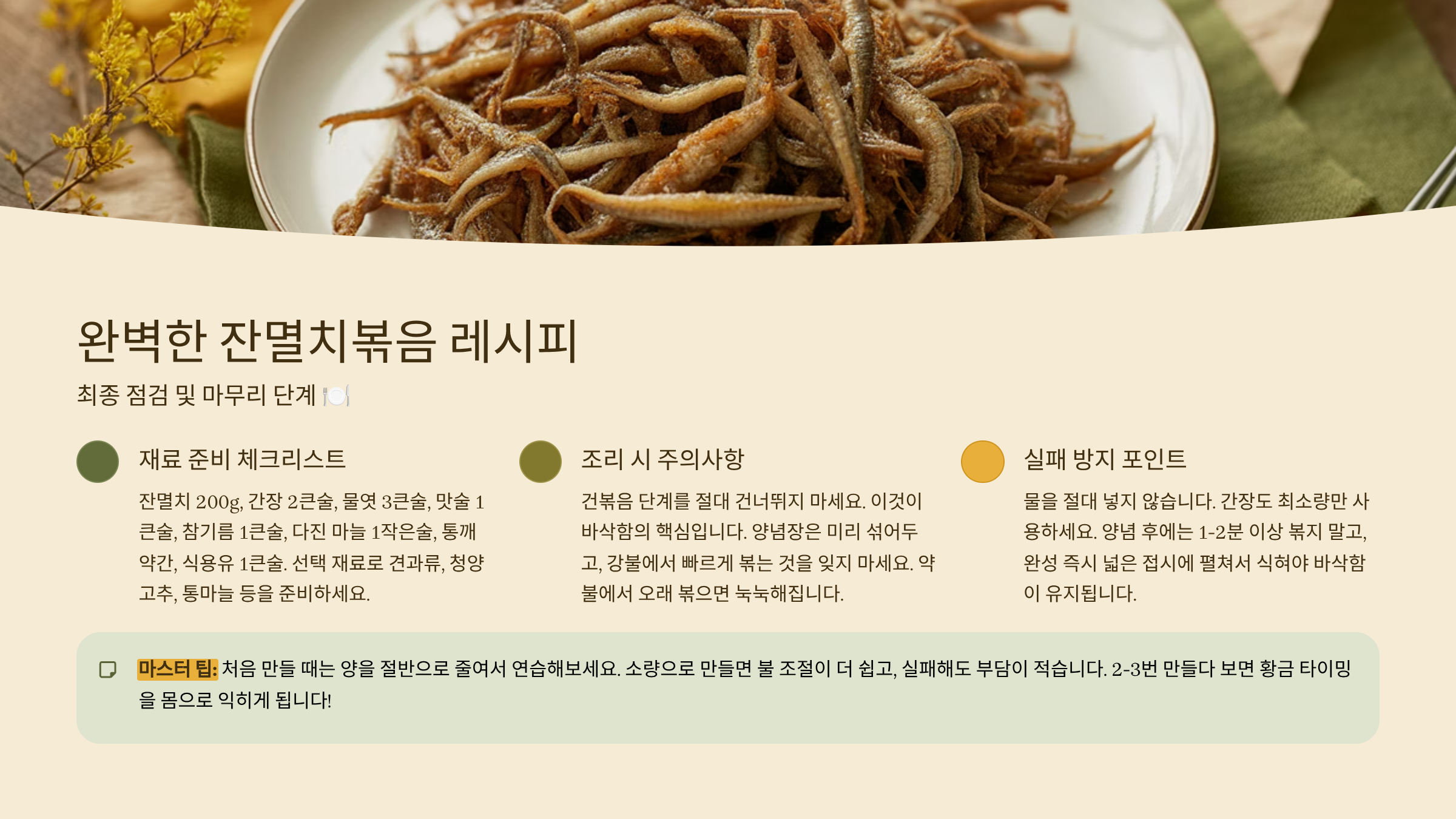 💡 잔멸치볶음 성공의 3가지 핵심 요약