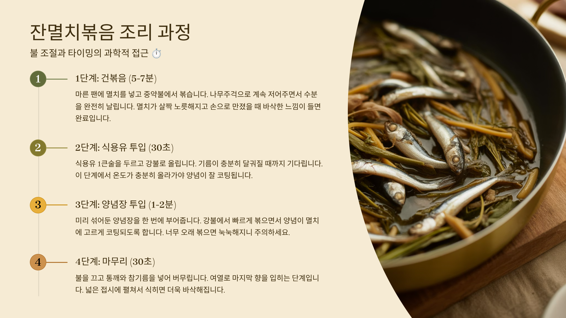 4. 잔멸치볶음 조리 과정: 불 조절과 타이밍의 과학적 접근 ⏱️