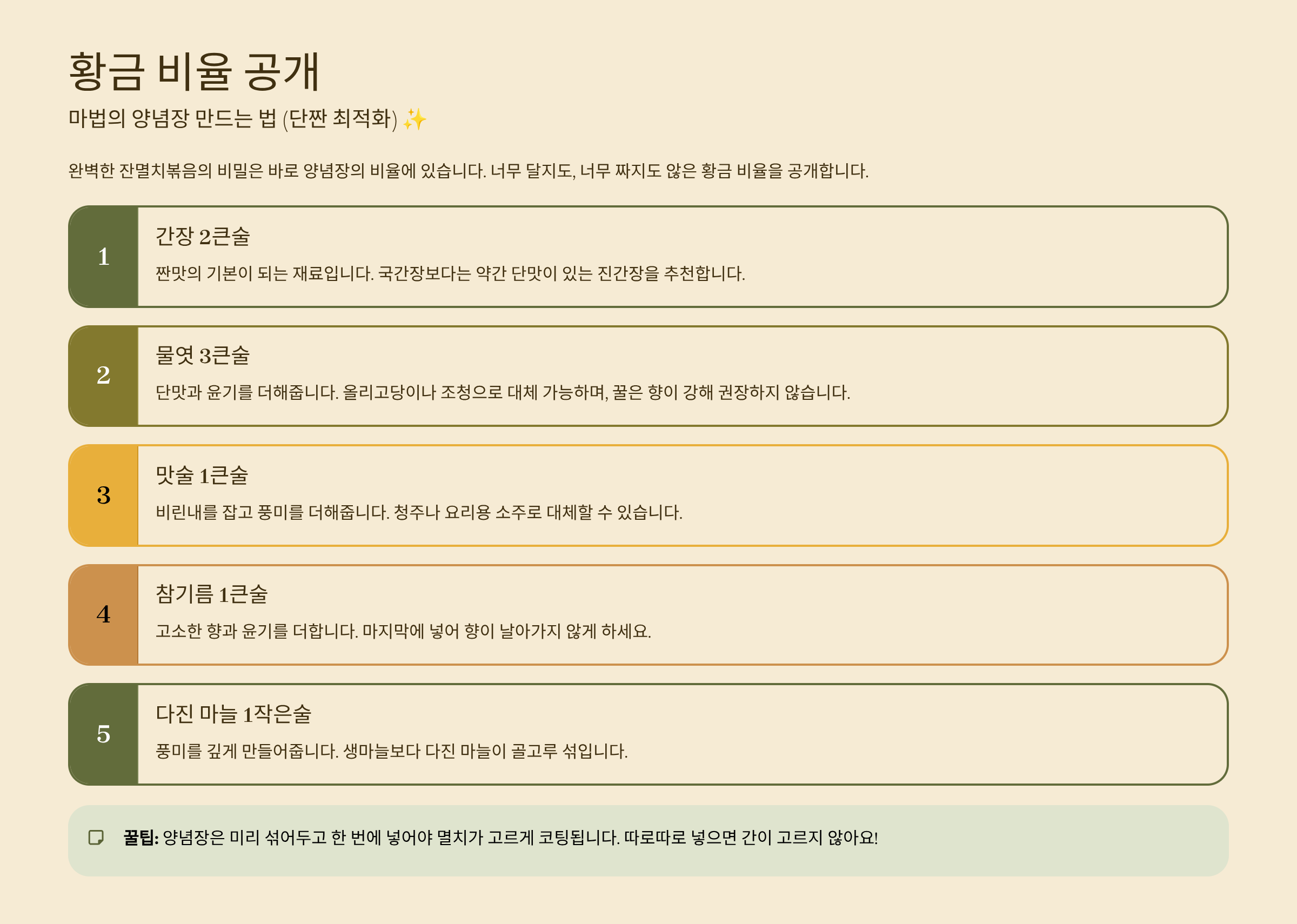 3. 황금 비율 공개: 마법의 양념장 만드는 법 (단짠 최적화) ✨