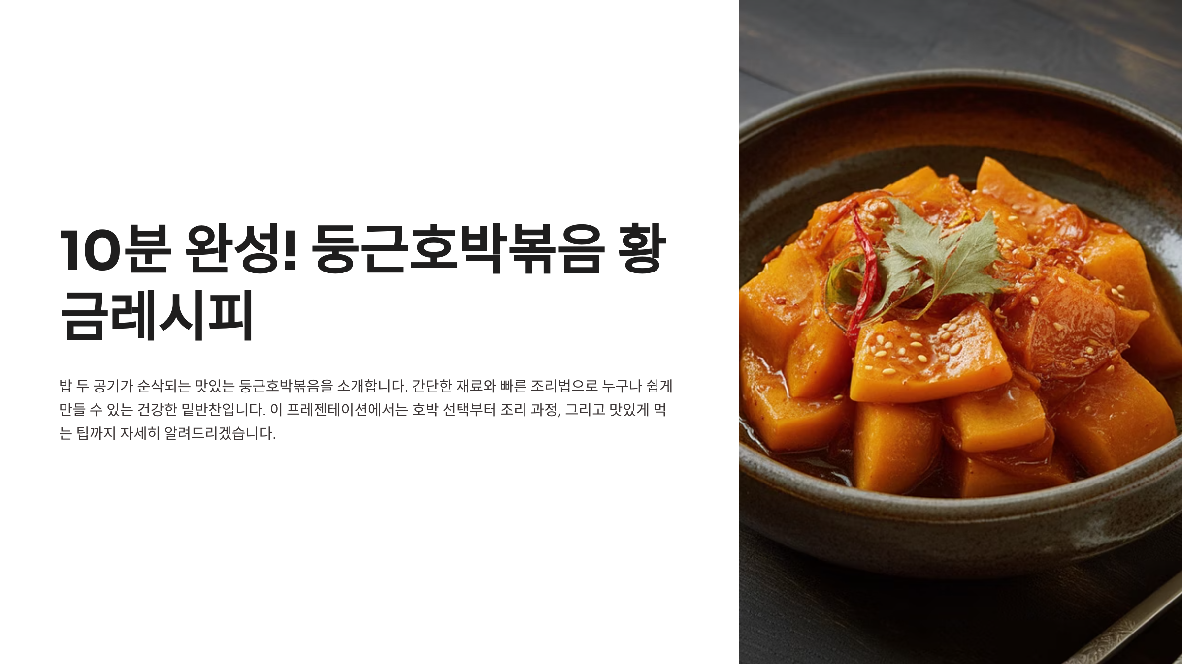 둥근호박볶음은 누구나 쉽고 빠르게 만들 수 있는 반찬이에요. 10분 만에 완성할 수 있고, 부드럽고 달콤한 맛 덕분에 밥 두 공기는 거뜬히 먹게 되는 마법 같은 요리죠. 제가 생각했을 때, 이 황금레시피만 알면 바쁜 날에도 든든한 밥상이 가능해요.