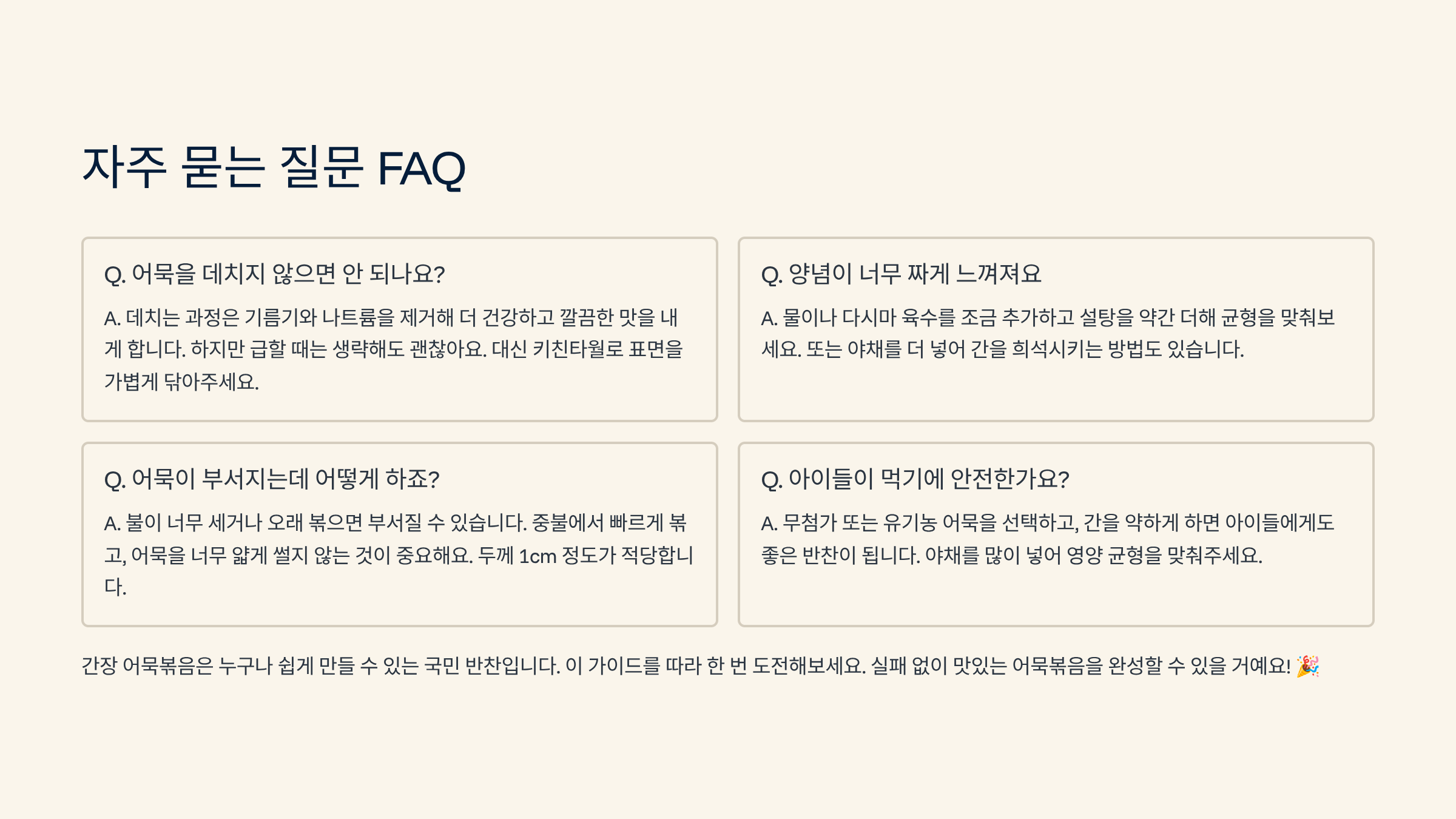 이 세 가지만 지켜도 당신의 간장 어묵볶음은 '초간단 반찬'을 넘어 '요리'가 됩니다.