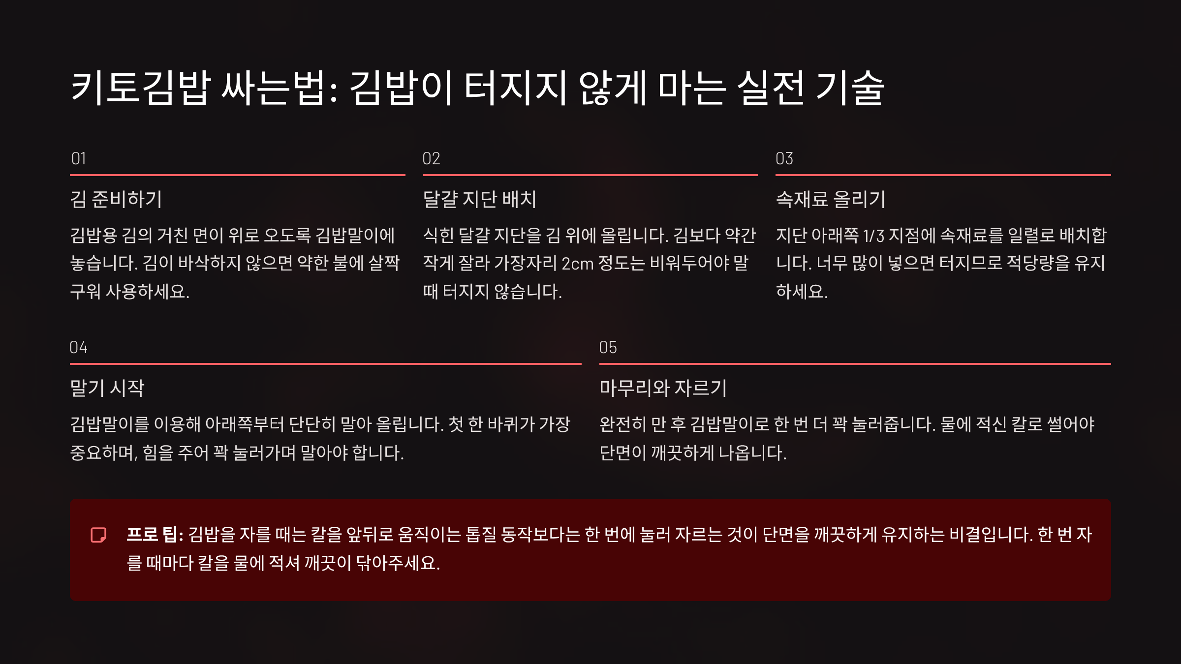 4. 키토김밥 싸는법: 김밥이 터지지 않게 마는 실전 기술 🍙