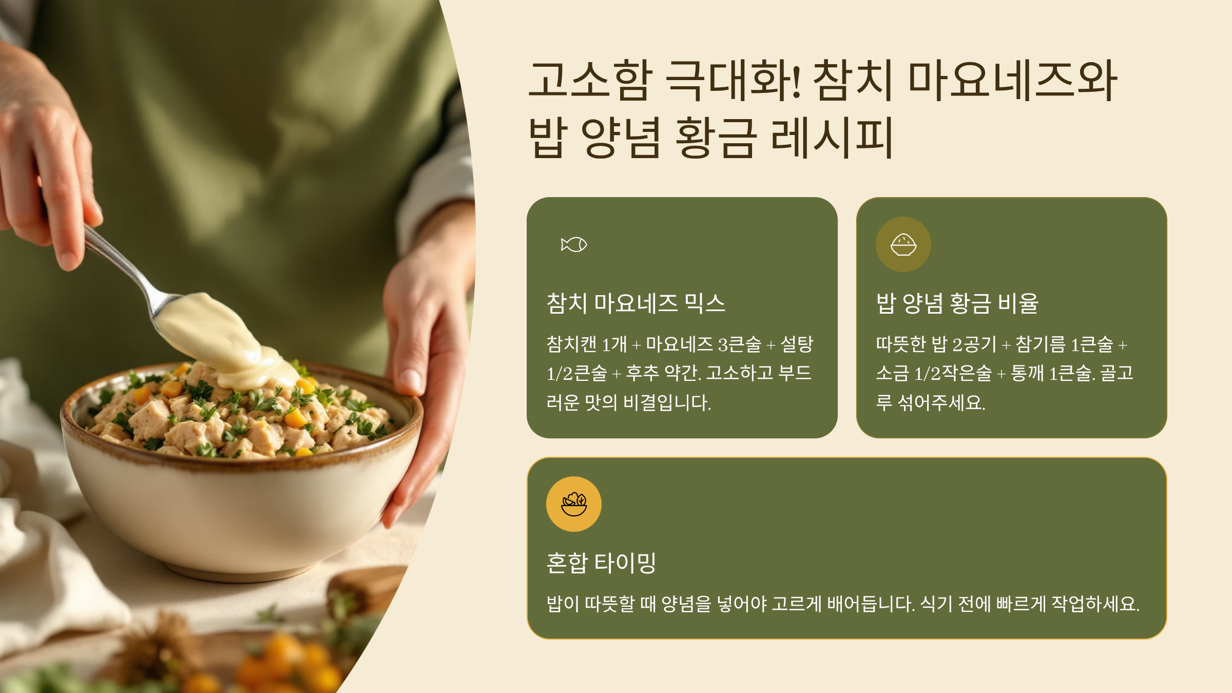 2. 고소함 극대화! 참치 마요네즈와 밥 양념 황금 레시피 🥄