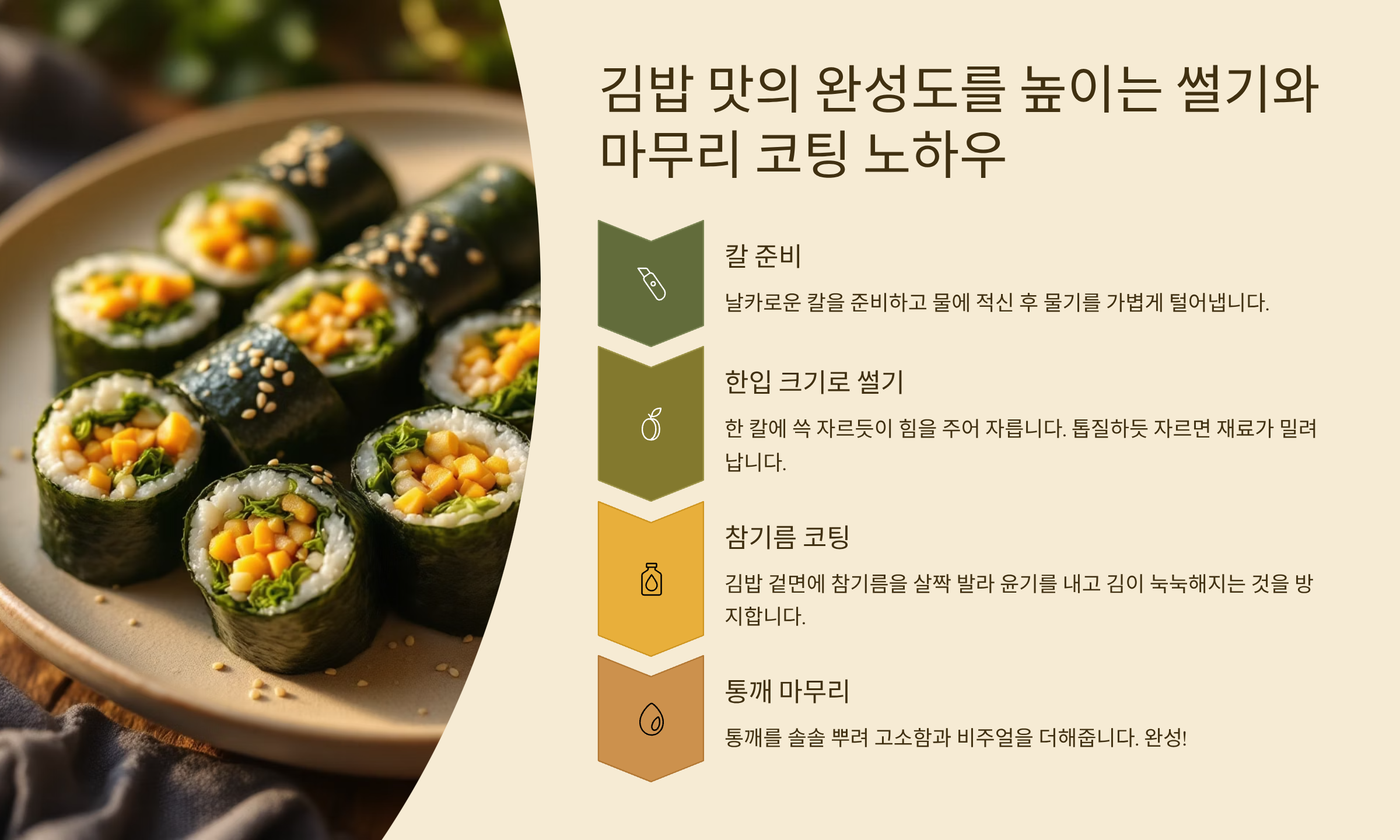 5. 김밥 맛의 완성도를 높이는 썰기와 마무리 코팅 노하우 🔪