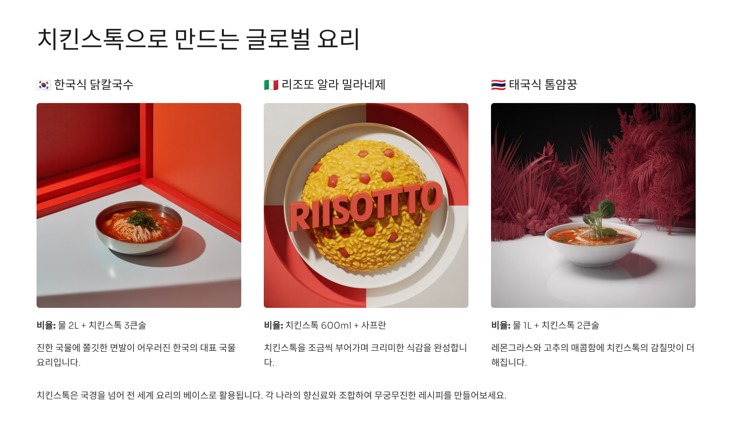 6. 치킨스톡으로 만드는 글로벌 요리 레시피 🌍