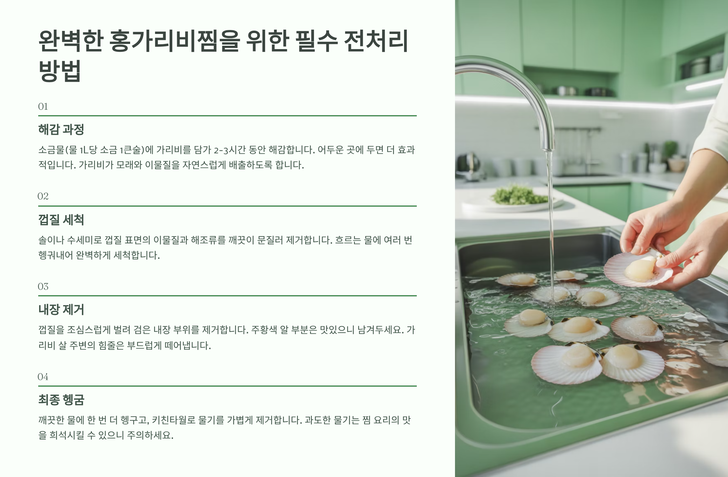 2. 완벽한 홍가리비찜을 위한 필수 전처리(해감 및 세척) 방법 🧼