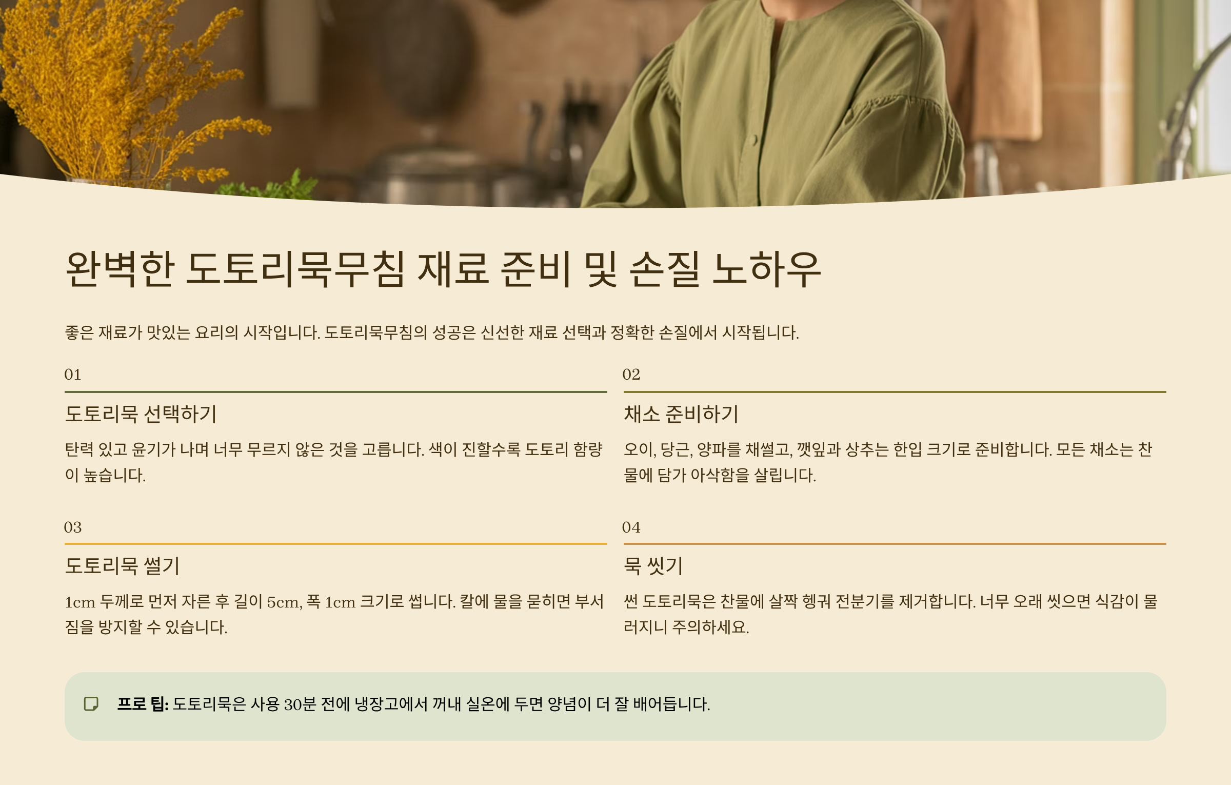2. 완벽한 도토리묵무침 재료 준비 및 손질 노하우 🔪