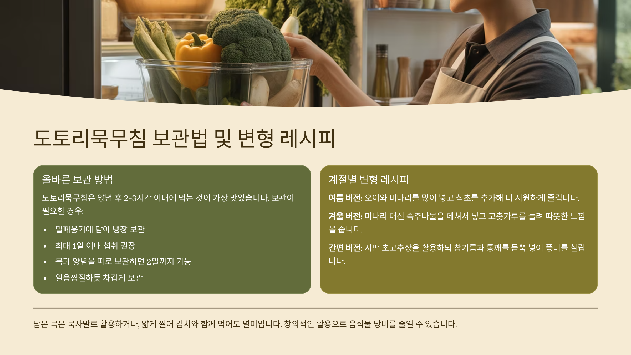 6. 도토리묵무침 보관법 및 변형 레시피 🔄