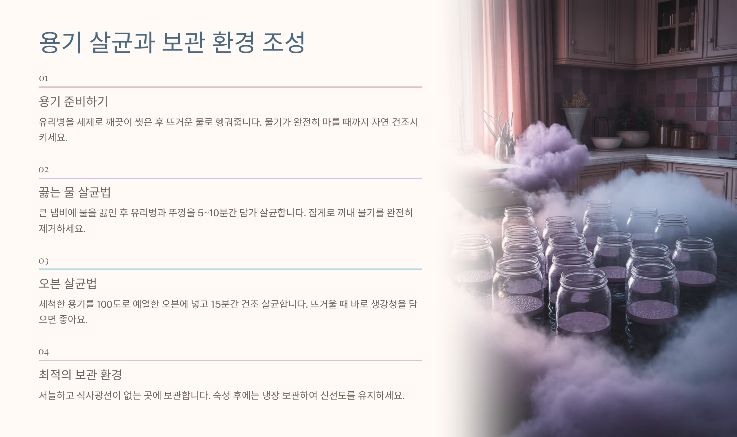 3. 생강청에 최적화된 용기 살균 방법과 보관 환경 조성 📝