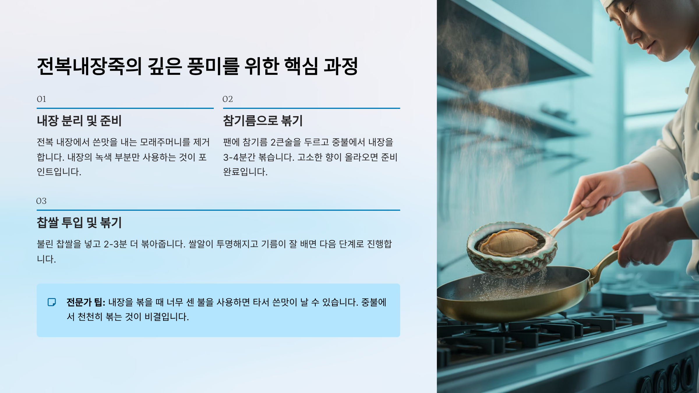 4. 죽의 농도 조절과 전복살 투입 시점 전문가 조언 👩🍳