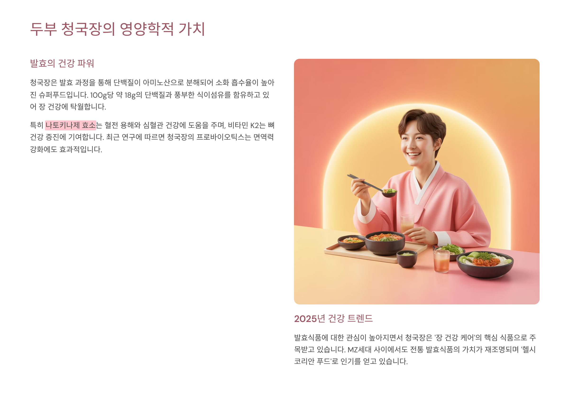 청국장의 주요 건강 효능 및 핵심 성분 분석 (2025년 기준)