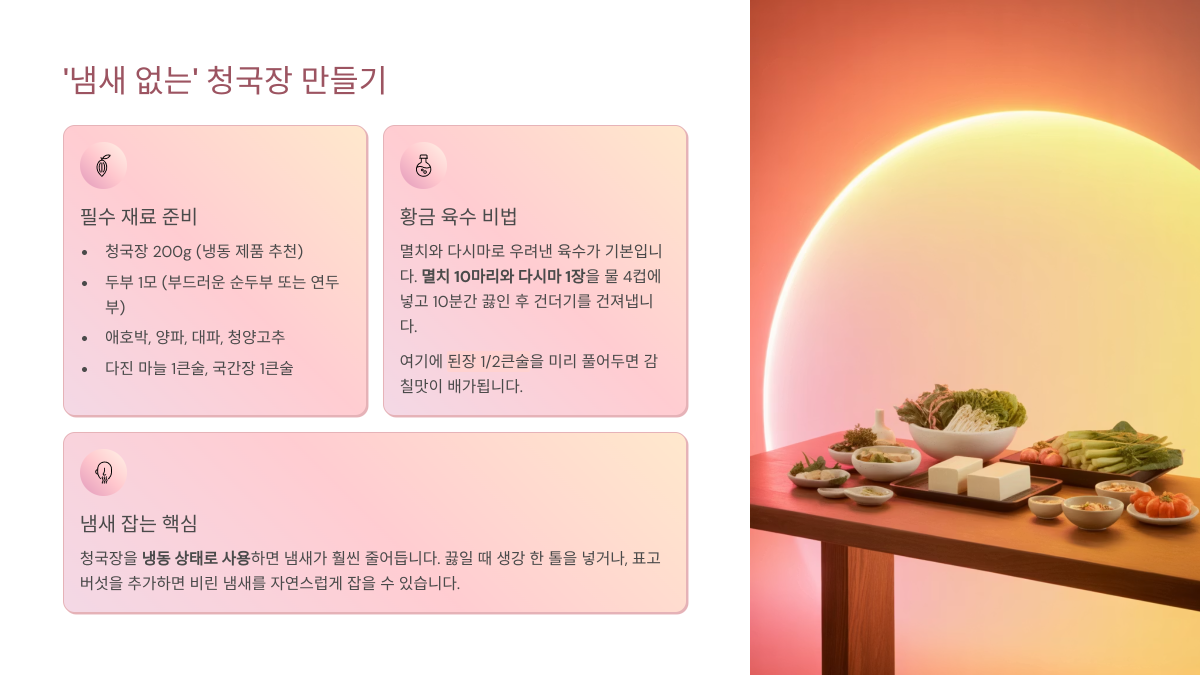 두부 청국장 맛있게 끓이는 방법: 구수함은 올리고 냄새는 잡는 황금 레시피