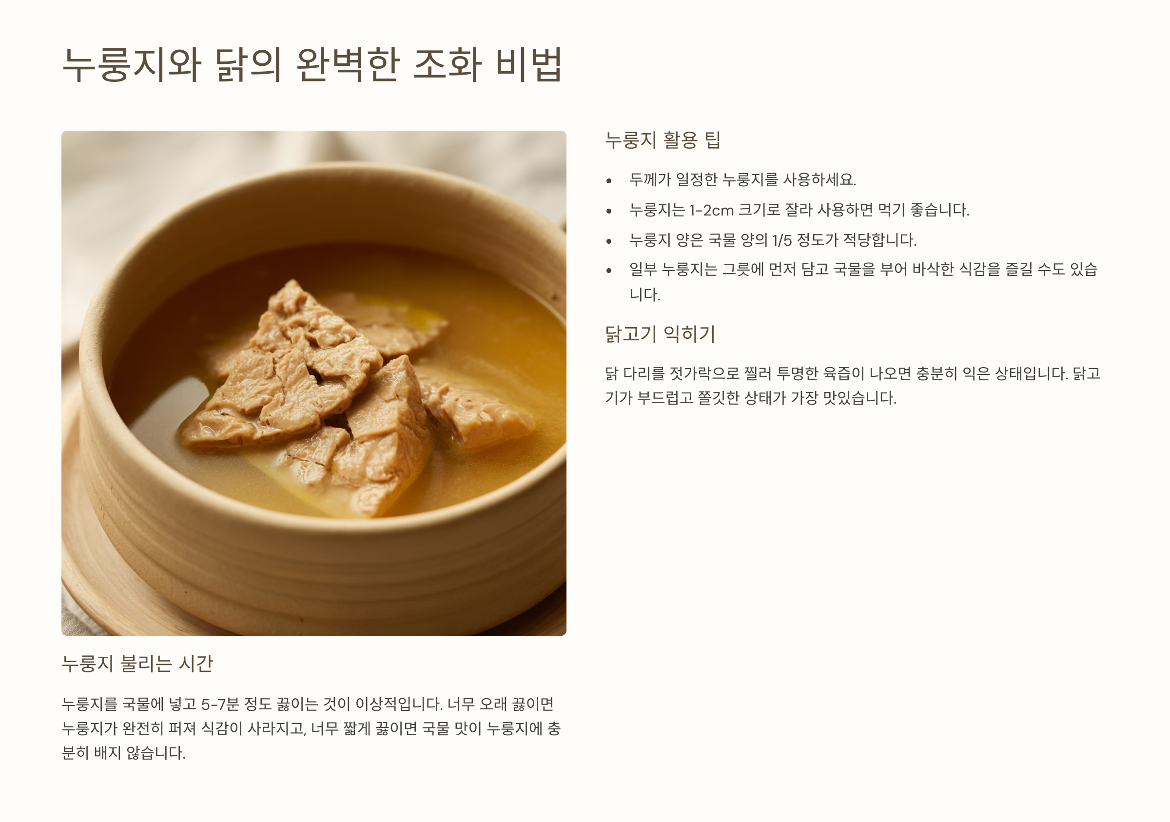 🍚 누룽지 삼계탕 맛내기 팁 표