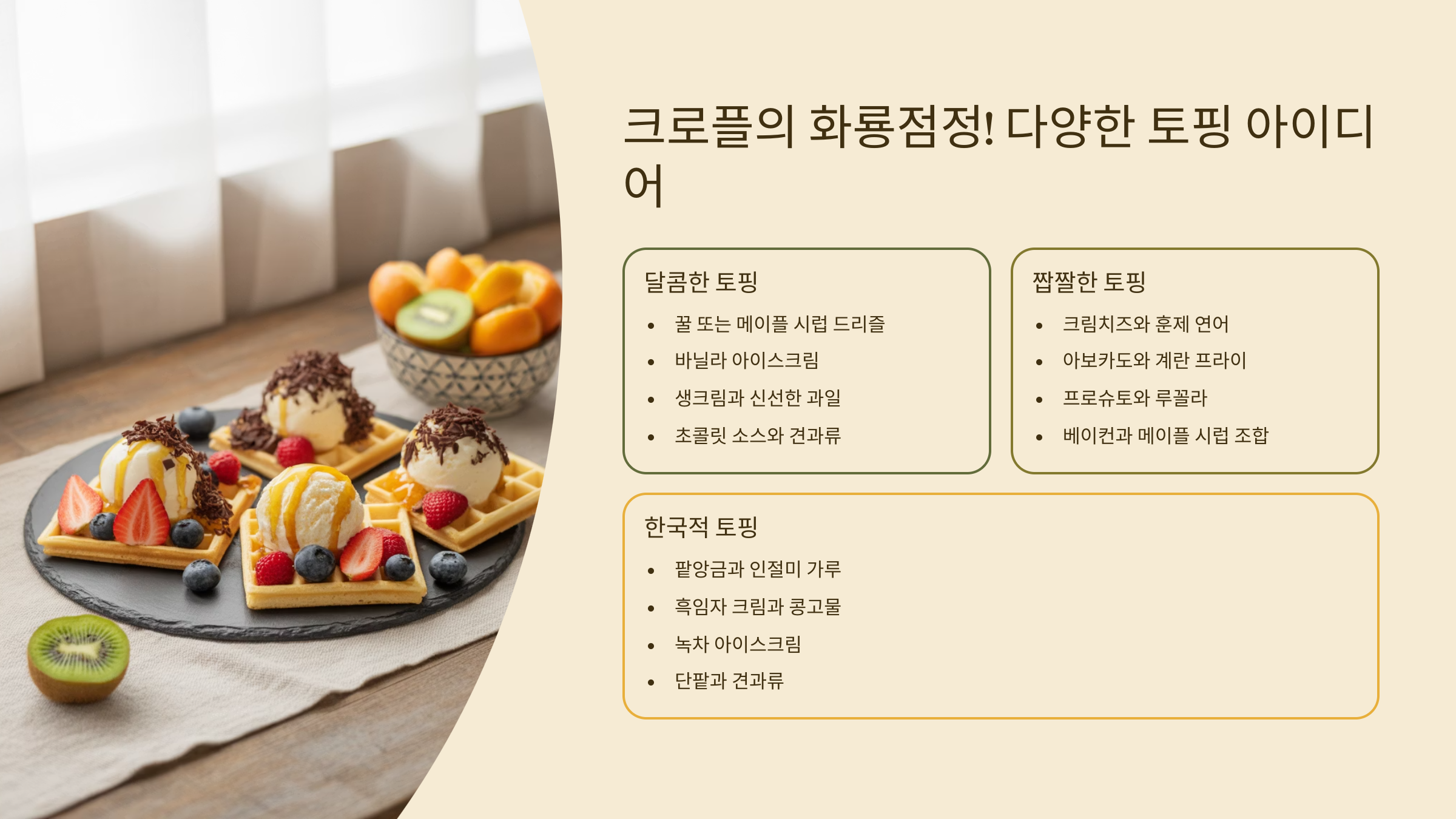 - 크로플의 화룡점정! 다양한 토핑 아이디어