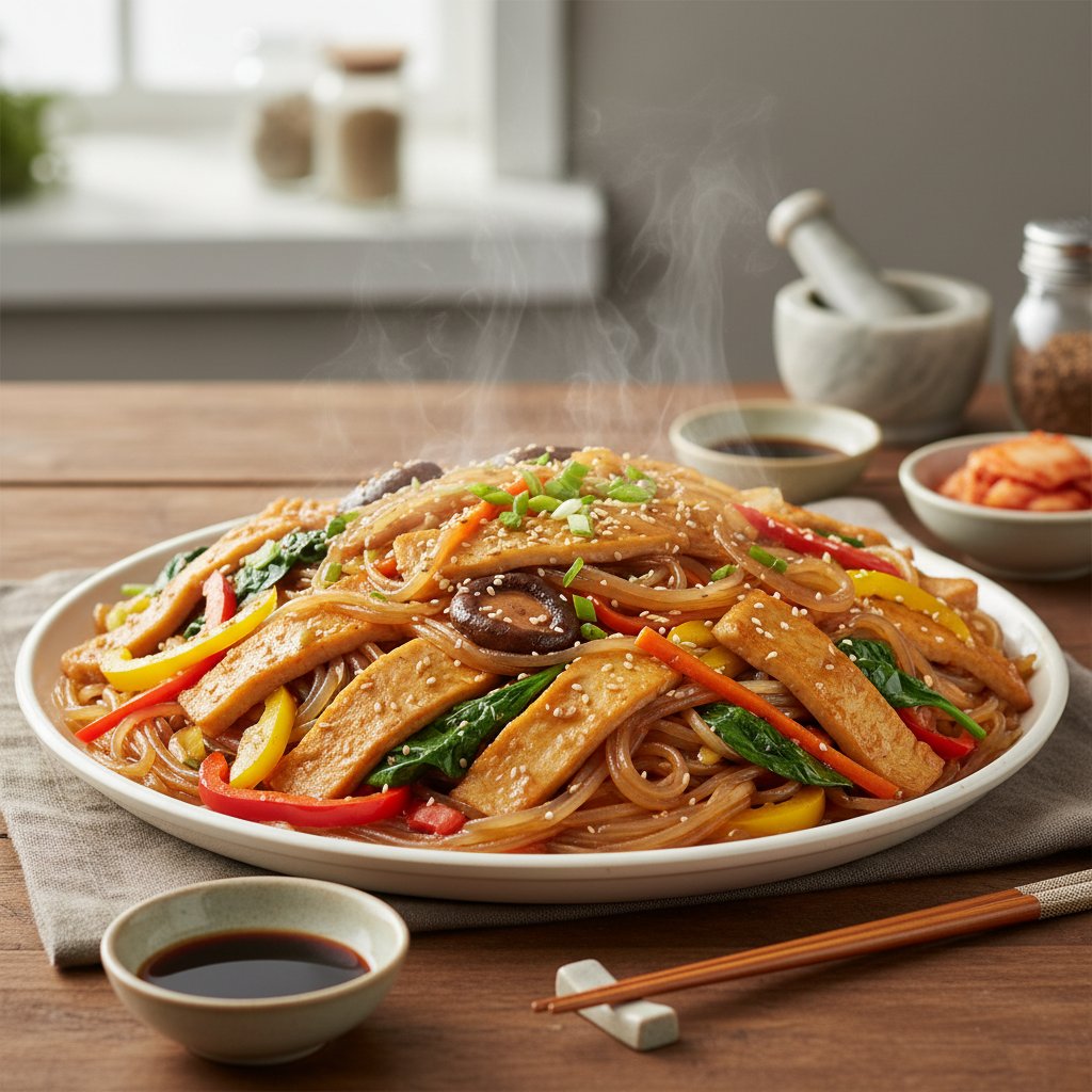 A: 네, 어묵 대신 버섯이나 두부면 등을 활용하고, 양념장도 채수와 비건 간장을 사용하면 비건 어묵 잡채를 만들 수 있습니다.