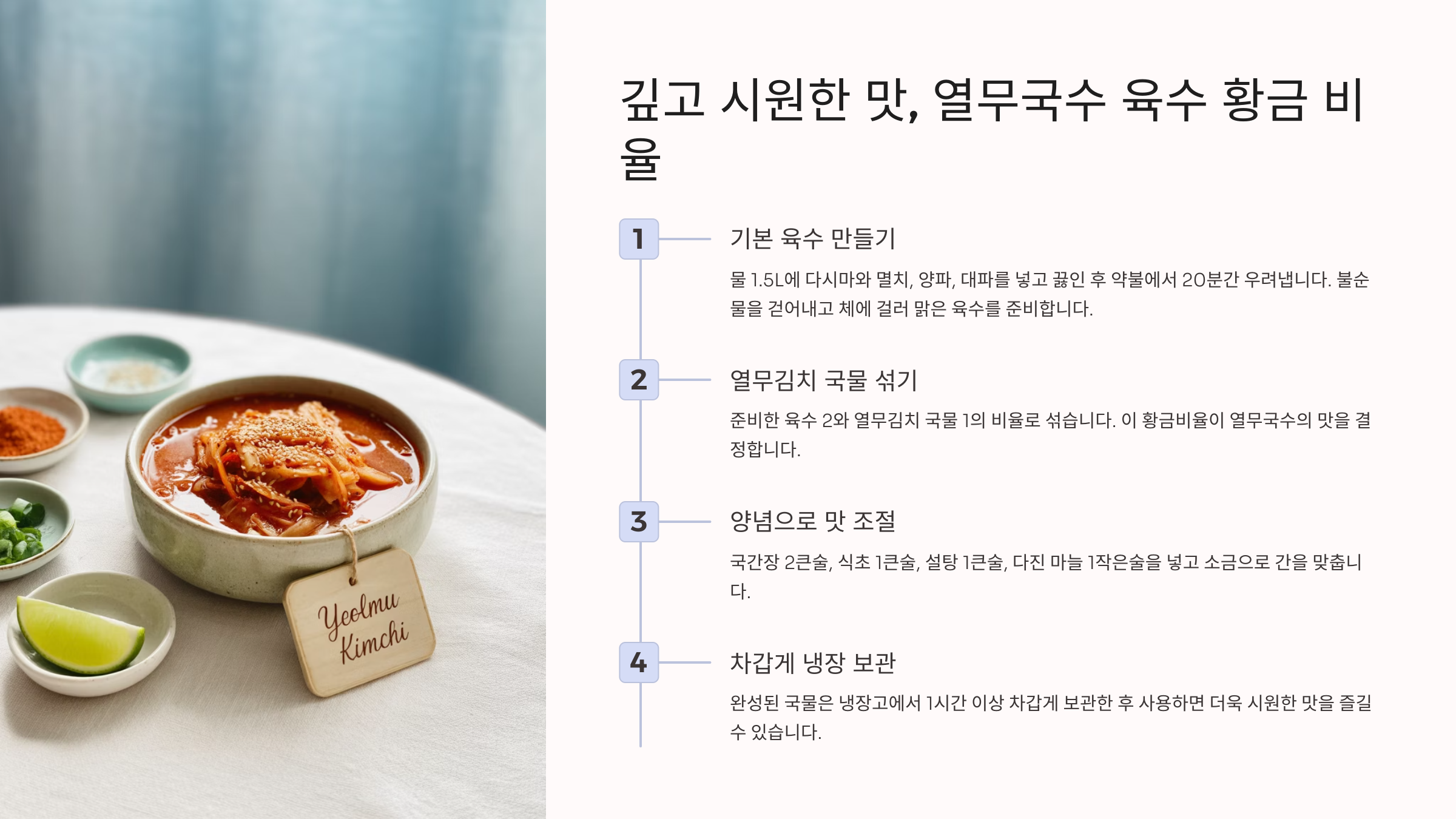 면 요리 꿀팁 더보기깊고 시원한 맛, 열무국수 육수 황금 비율