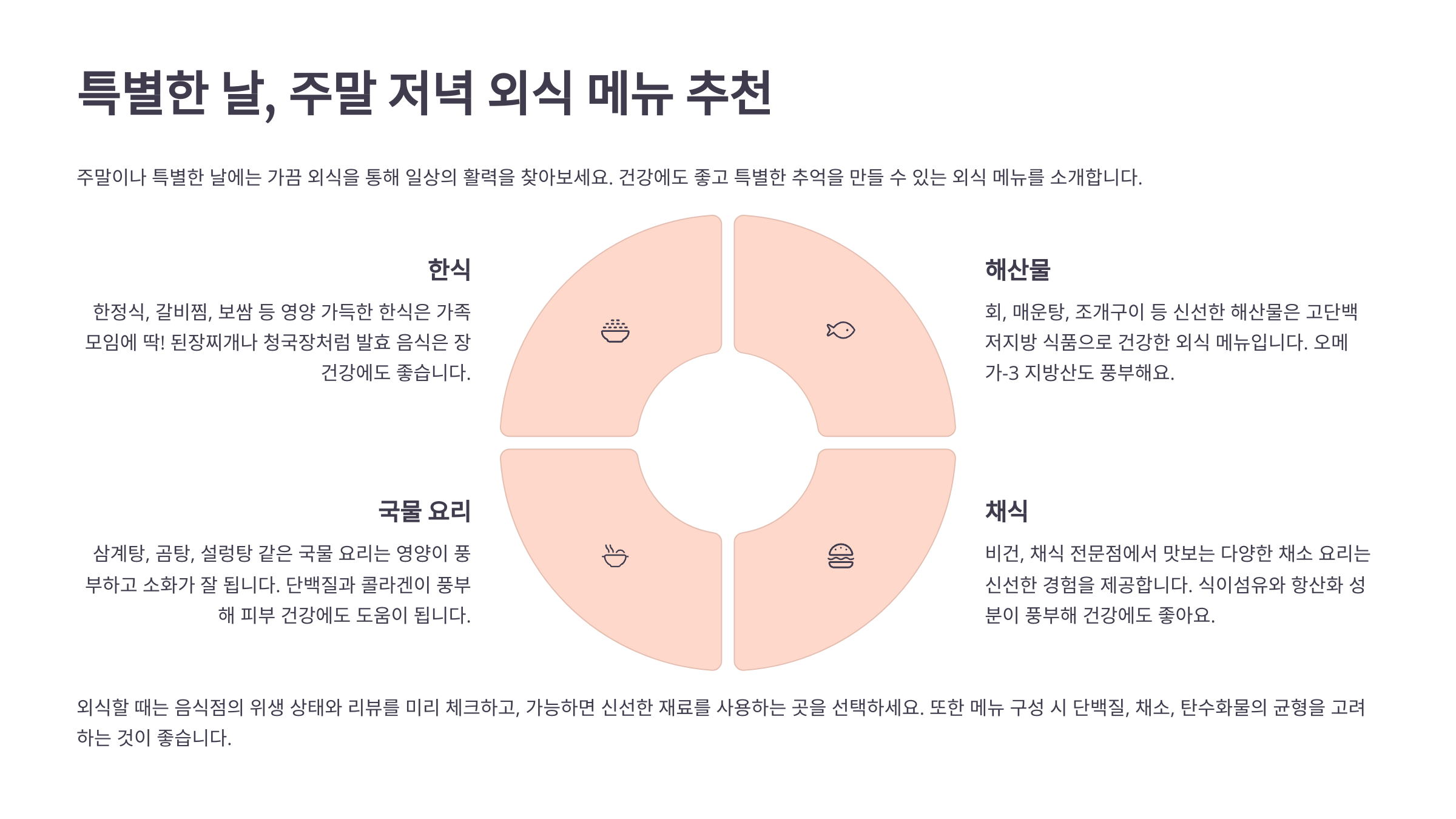 | 상황별 추천 | 외식 메뉴 예시 | 고려 사항 |