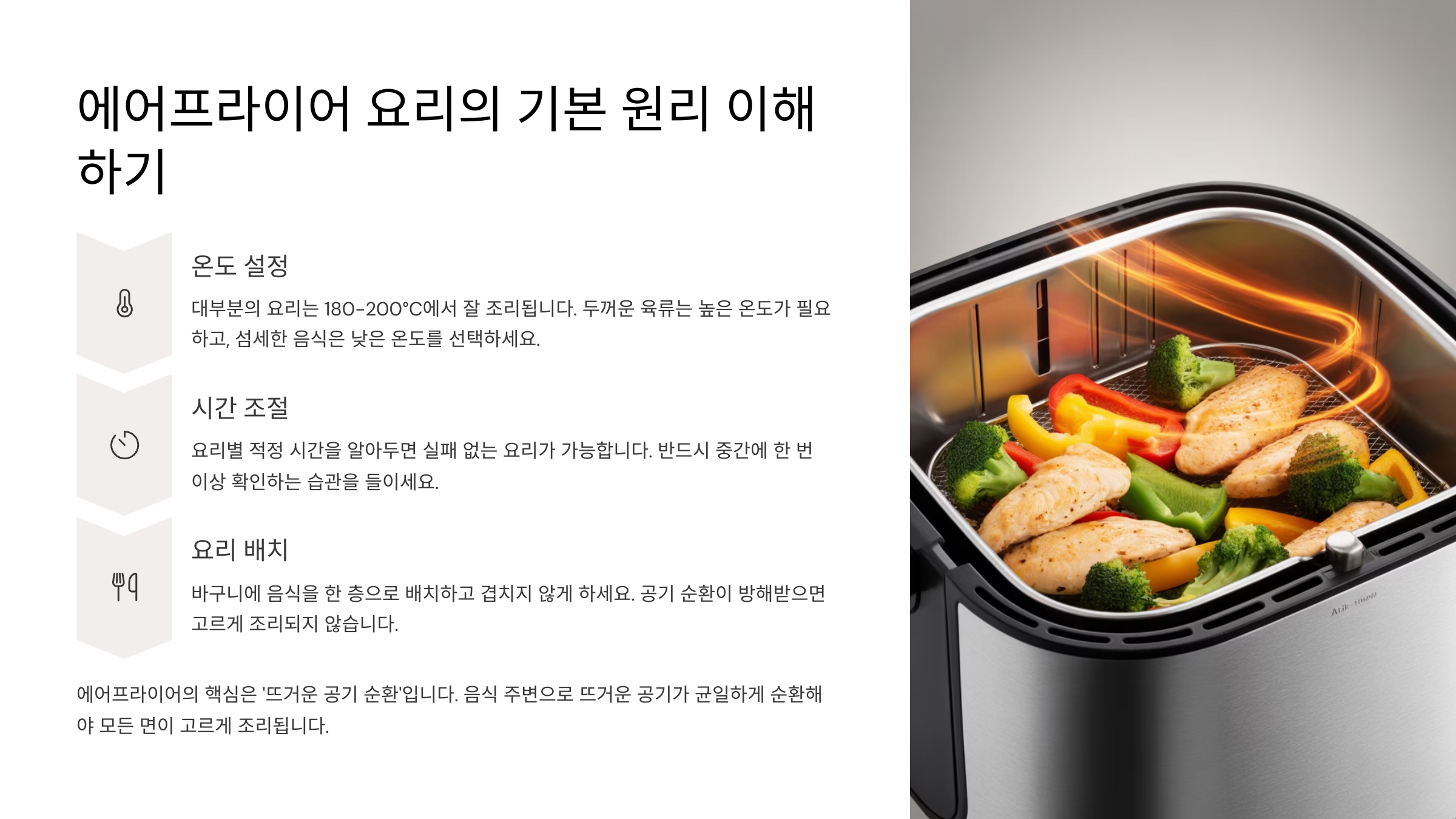 | 조리 원리 | 특징 | 활용 팁 |