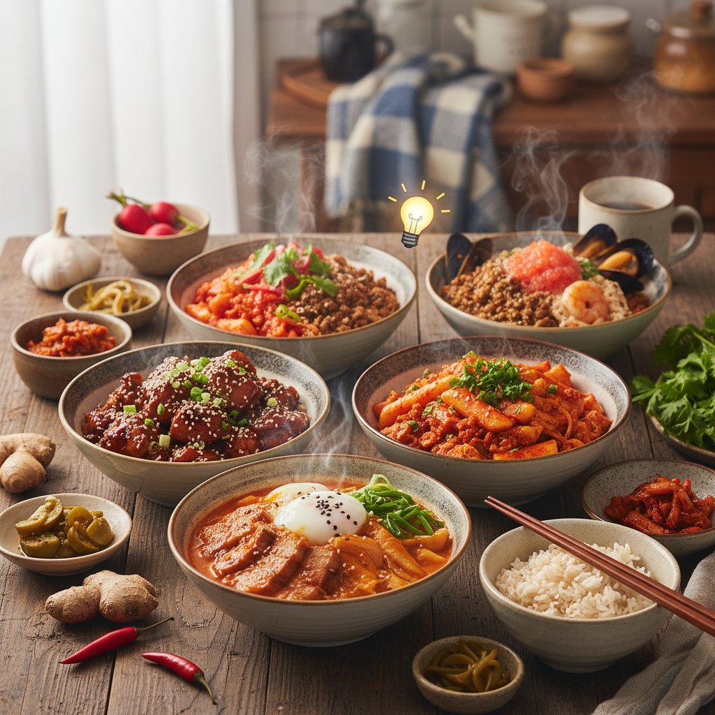 오늘 소개해드린 매콤한 덮밥 5종은 단순한 한 끼 식사를 넘어, 추운 겨울을 이겨낼 따뜻한 위로와 활력을 선사할 것입니다. 각자의 취향에 맞춰 재료를 더하고, 매운맛을 조절하며 나만의 특별한 덮밥을 만들어보세요. 잃었던 입맛을 되찾고, 든든하고 행복한 겨울 식탁을 꾸리시길 바랍니다! 더 궁금한 점이 있다면 언제든지 댓글로 물어봐주세요~ 😊