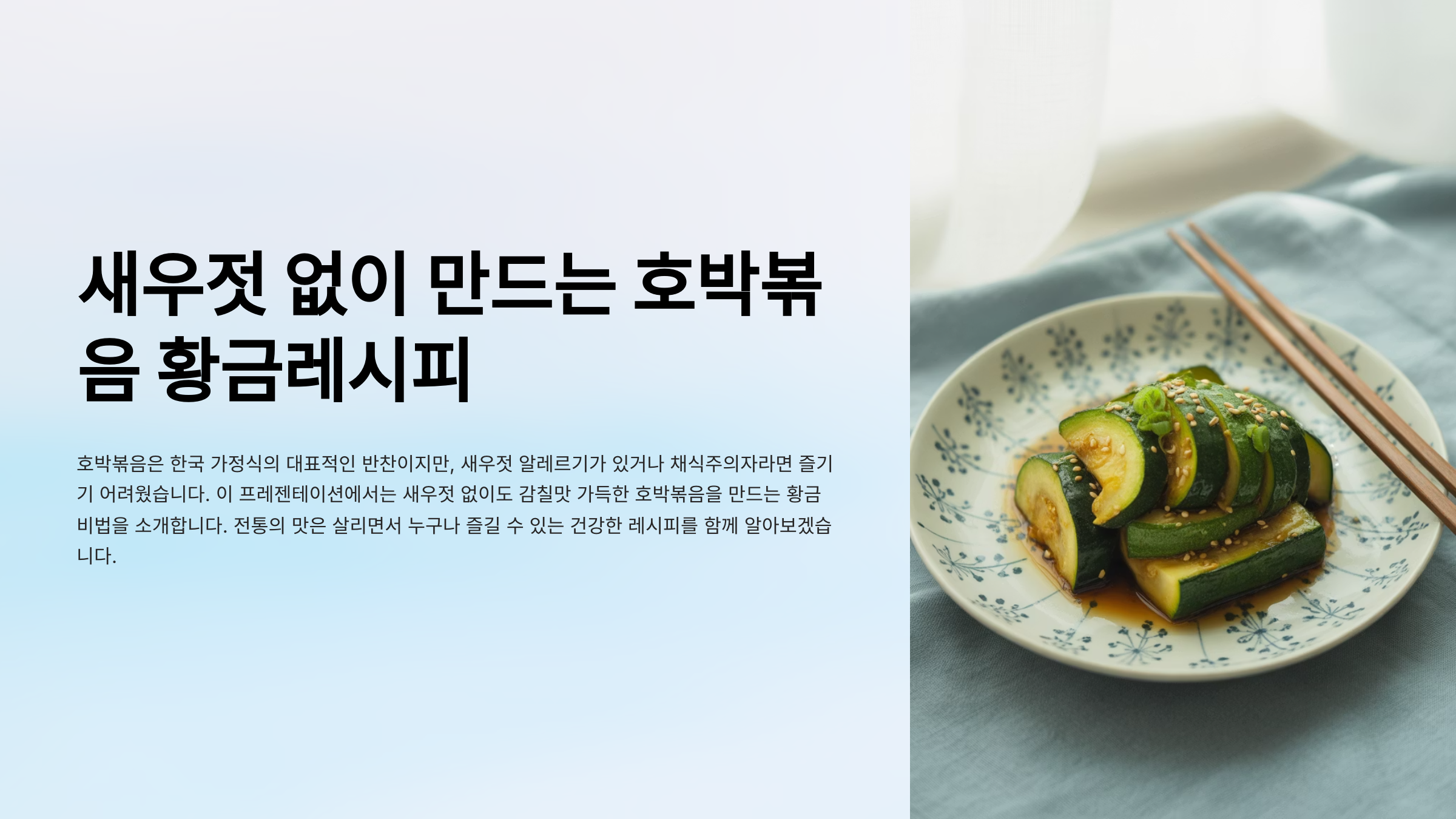 우리 식탁에 자주 오르는 밑반찬 중 하나인 호박볶음은 특유의 부드러운 식감과 은은한 단맛으로 남녀노소 모두에게 사랑받는 요리입니다. 일반적으로 호박볶음에는 새우젓이 들어가 깊은 감칠맛을 더하지만, 새우젓 알레르기가 있거나 특유의 향 때문에 꺼리는 분들도 많습니다. 그렇다고 호박볶음의 맛을 포기할 수는 없겠죠?