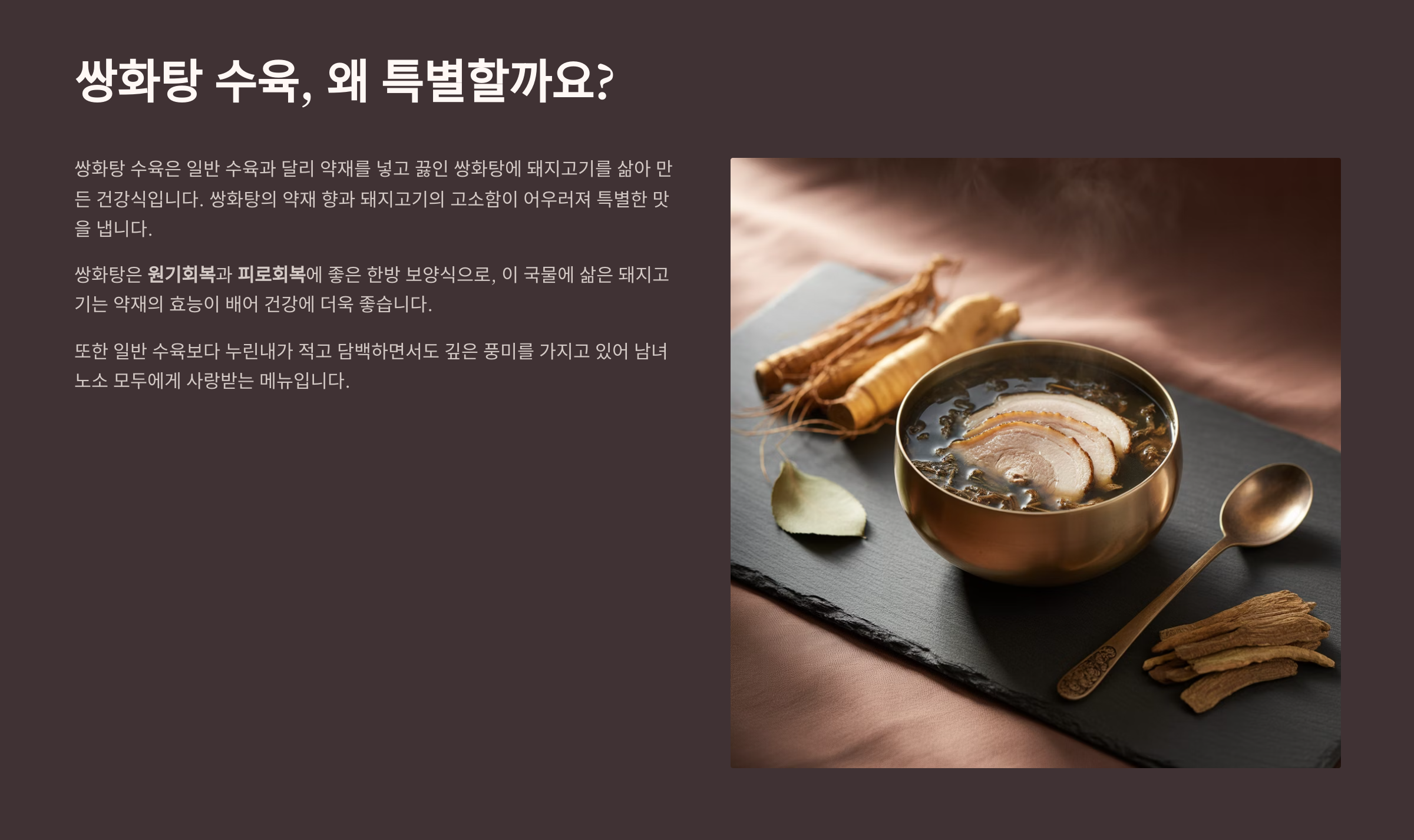 쌍화탕 수육, 왜 특별할까요?