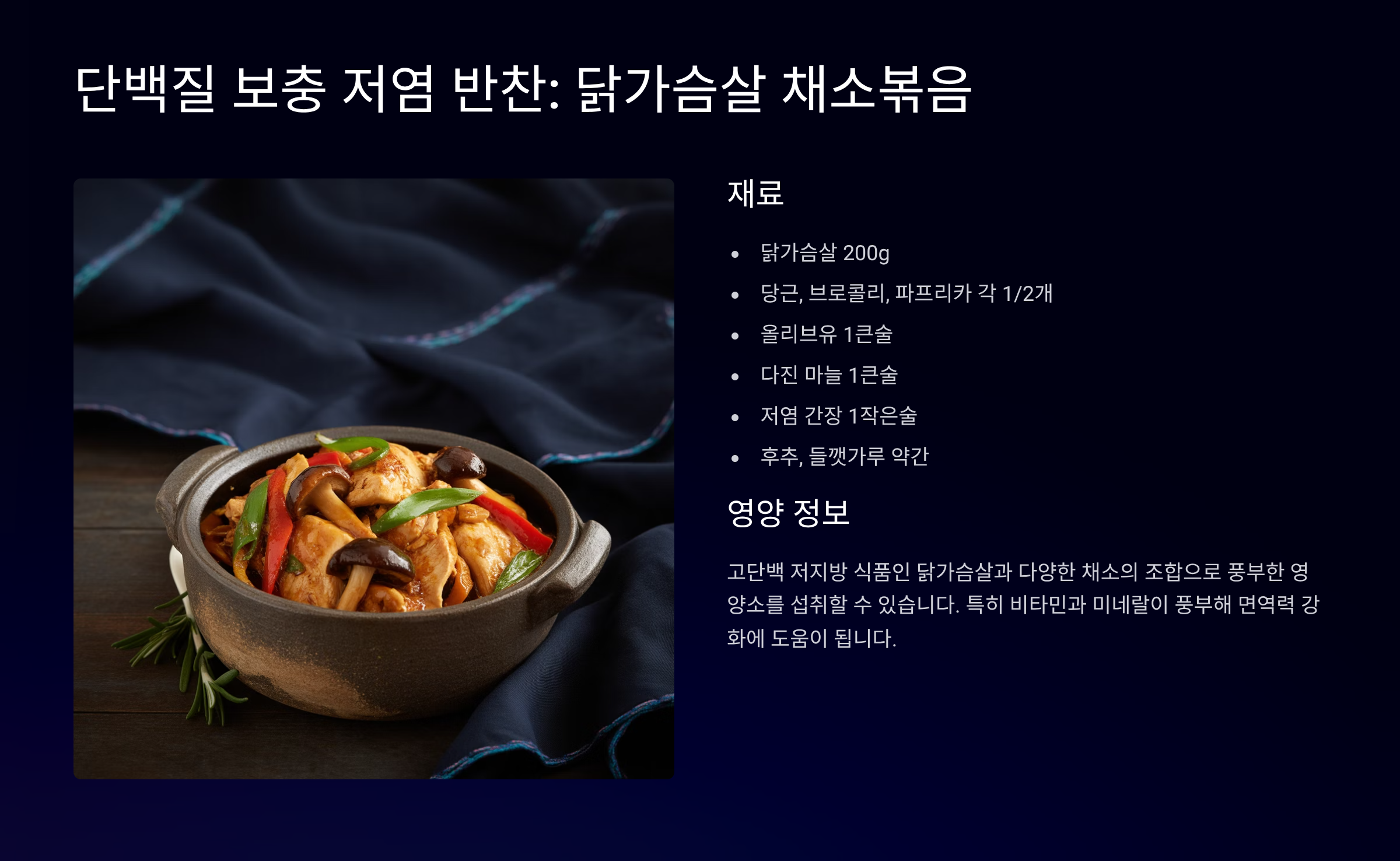 저염식 식단에서도 충분한 단백질 섭취는 매우 중요합니다. 특히 식물성 단백질과 함께 동물성 단백질을 균형 있게 섭취하는 것이 좋습니다. 하지만 육류나 생선 요리는 자칫하면 소금이나 간장을 과하게 사용하여 나트륨 섭취량이 높아질 수 있습니다. 여기서는 건강하면서도 맛있는 저염식 단백질 반찬으로 **닭가슴살 채소볶음** 레시피를 소개합니다.