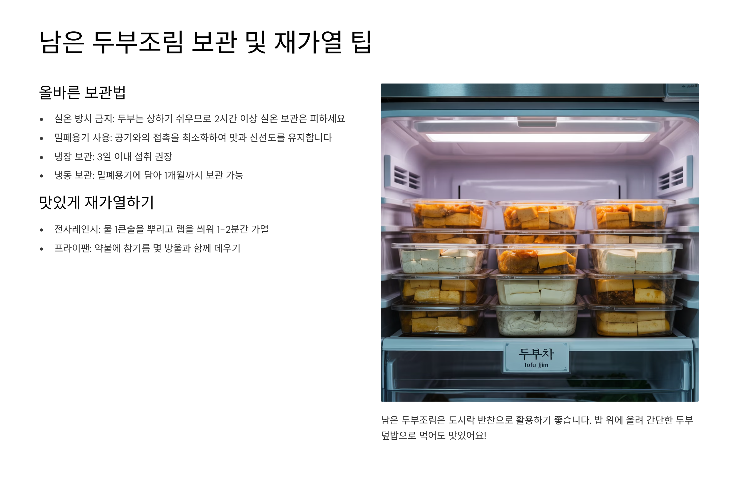 남은 두부조림 보관 및 재가열 팁