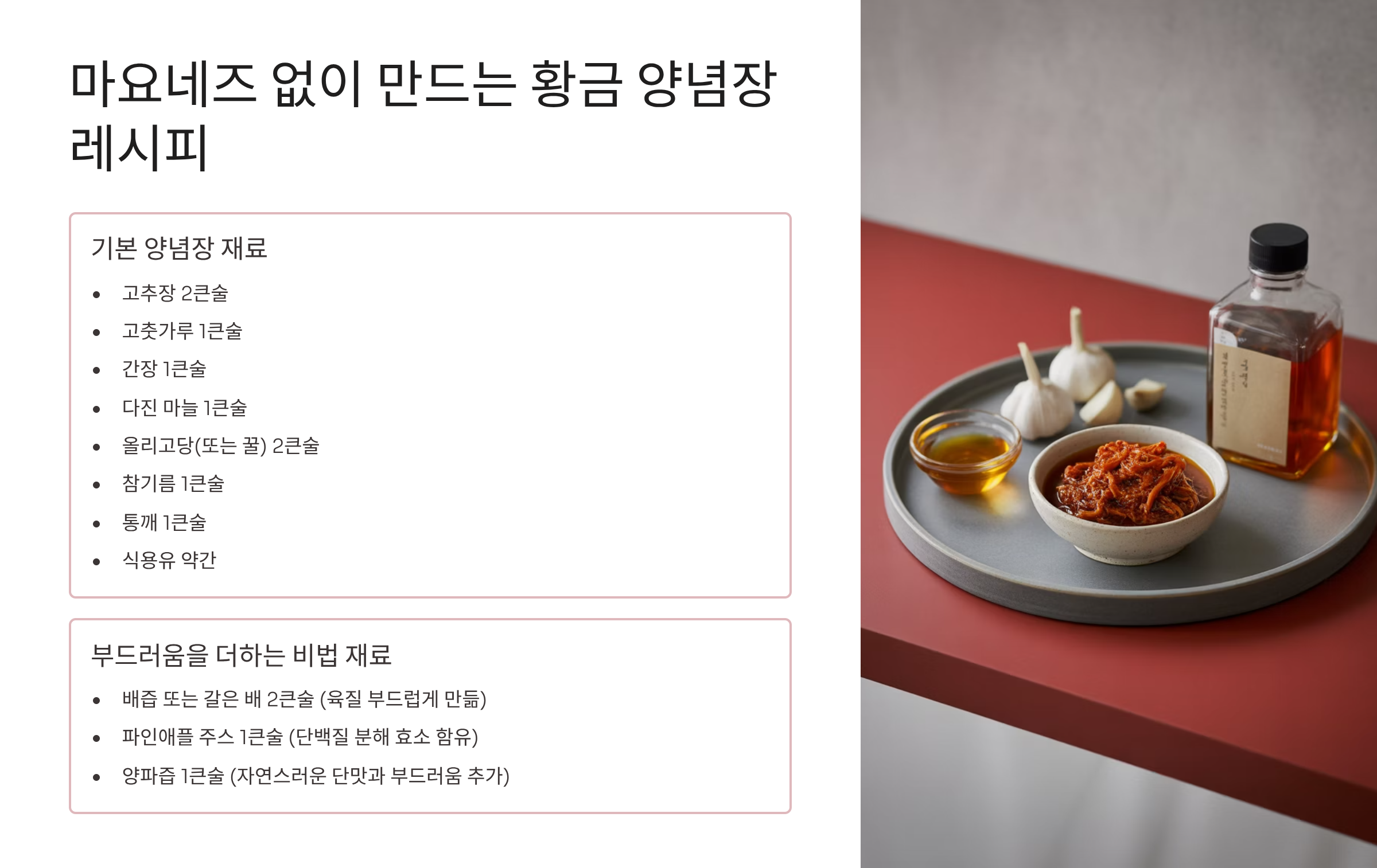- 마요네즈 없이 만드는 황금 양념장 레시피