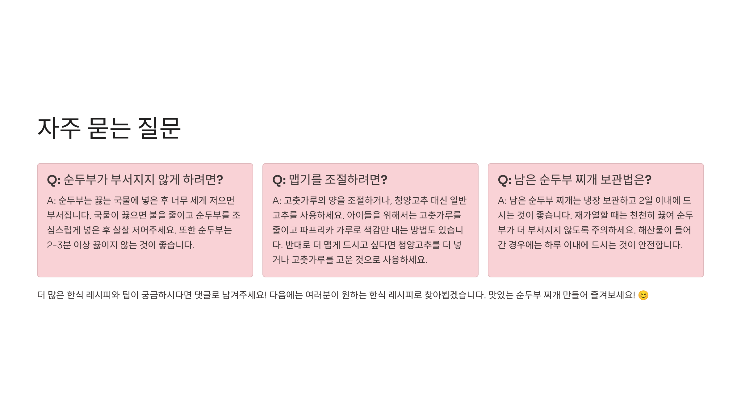 Q8. 채식 순두부 찌개 만드는 팁이 있나요?