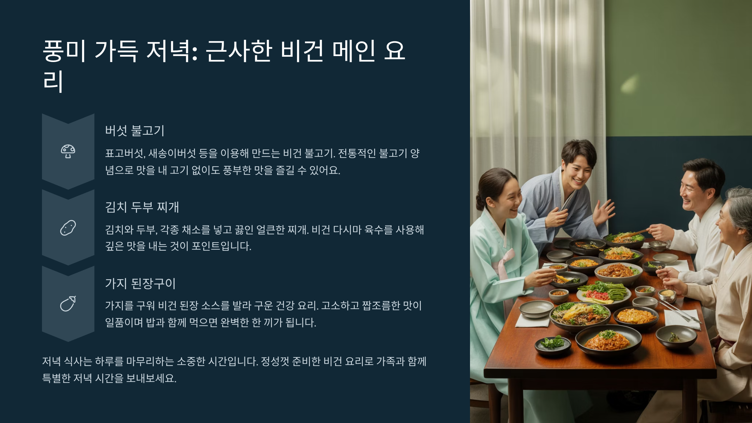 풍미 가득 저녁: 근사한 비건 메인 요리
