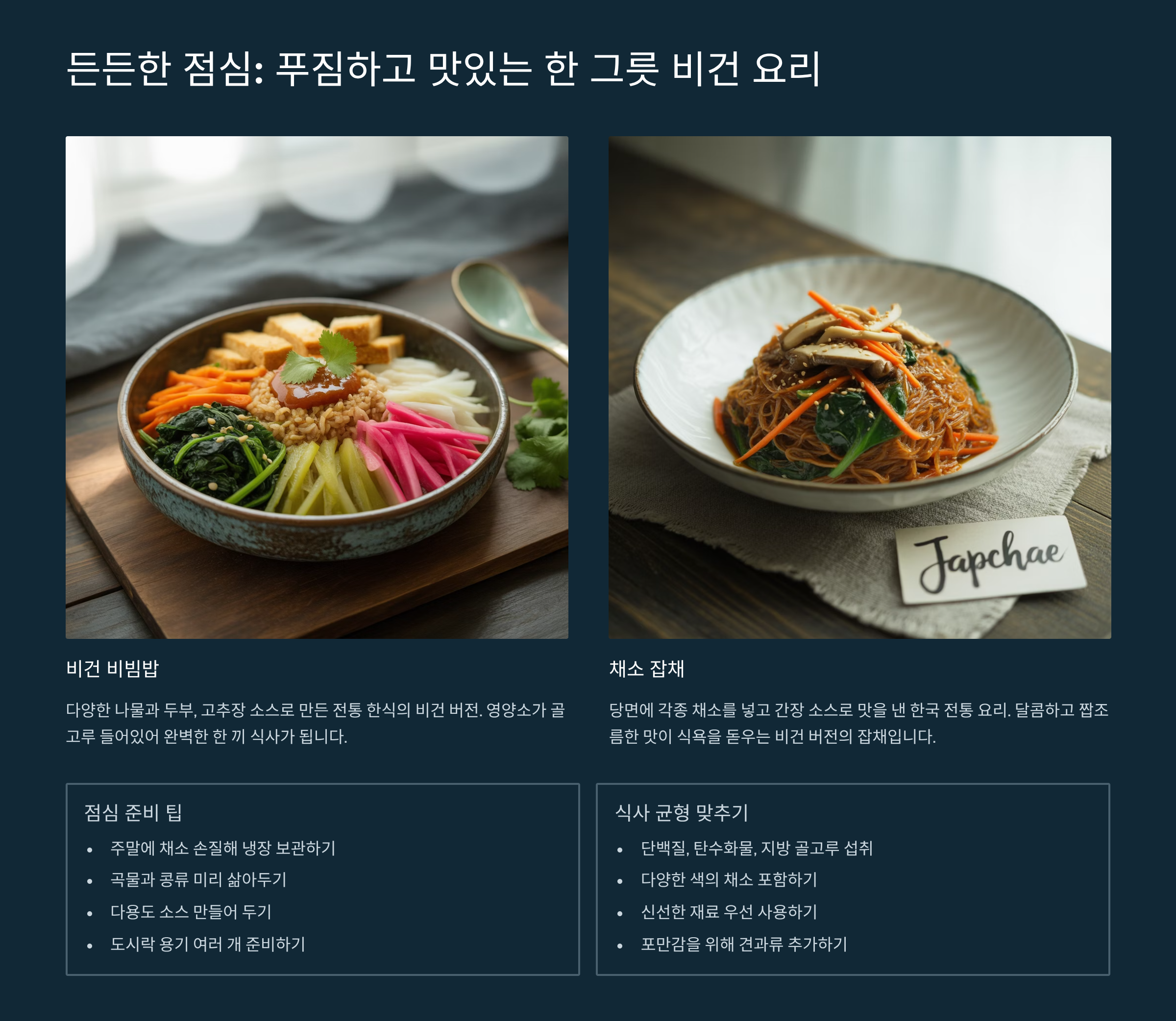 든든한 점심: 푸짐하고 맛있는 한 그릇 비건 요리