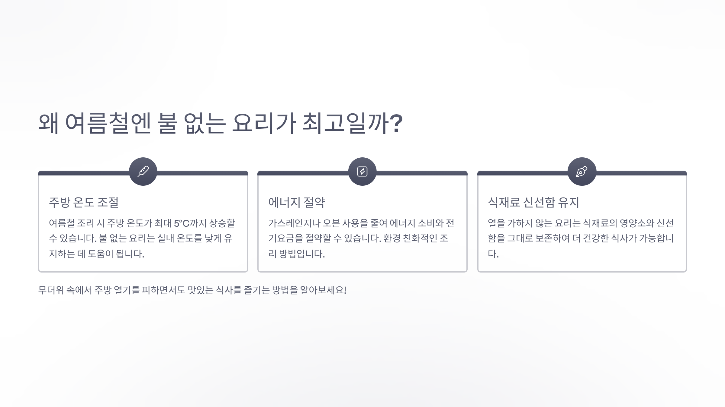 - 왜 여름철엔 불 없는 요리가 최고일까?