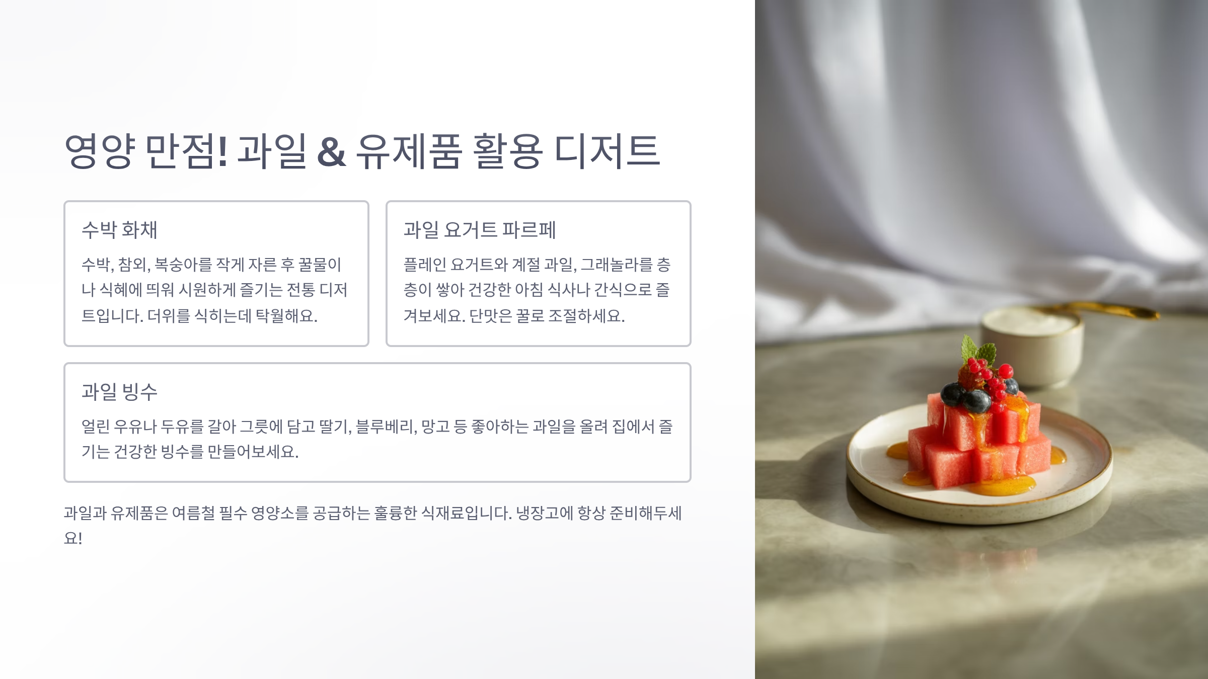 - 영양 만점! 과일 & 유제품 활용 디저트