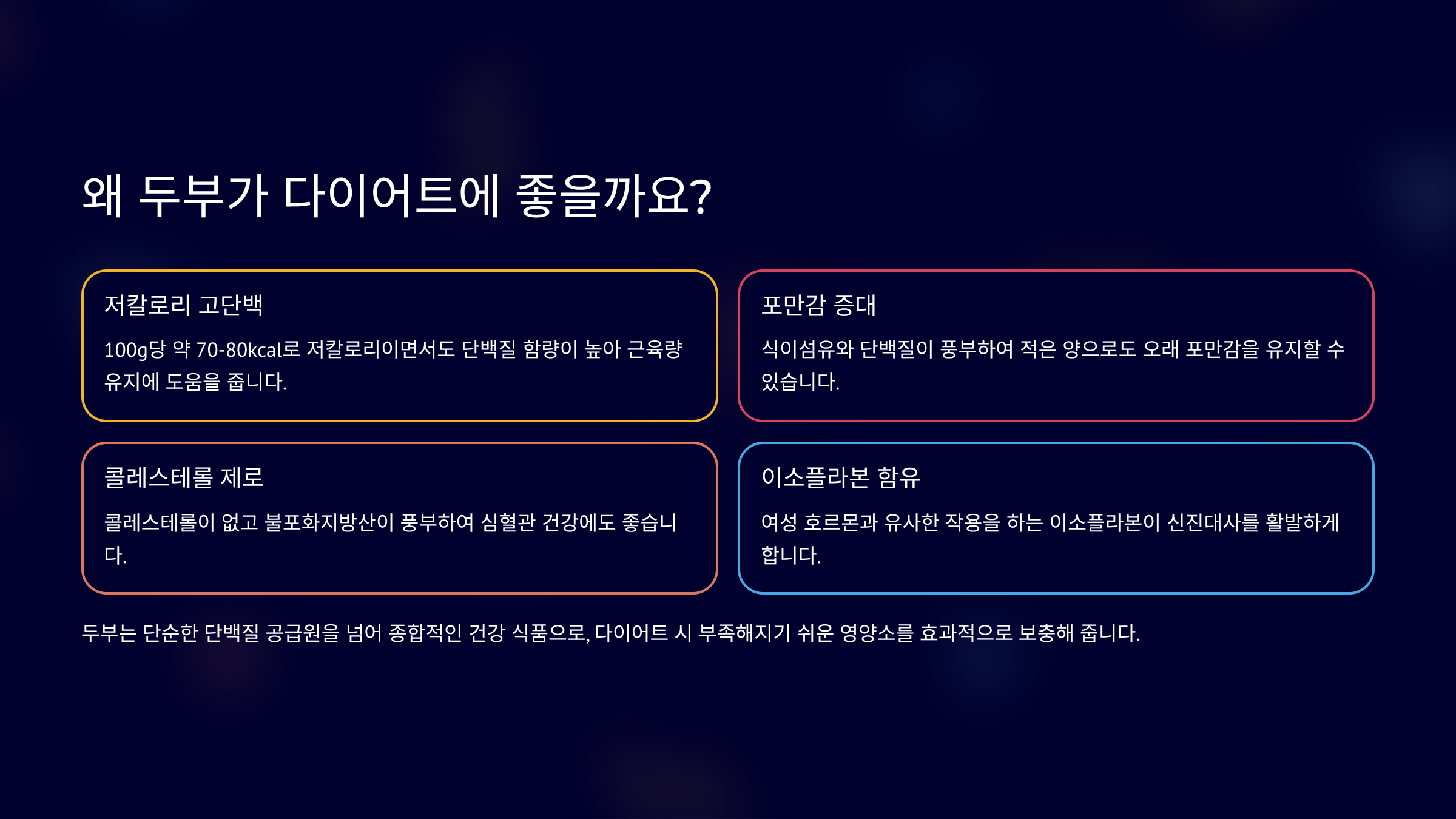 | 두부의 효능 | 상세 설명 | 다이어트 기여도 |