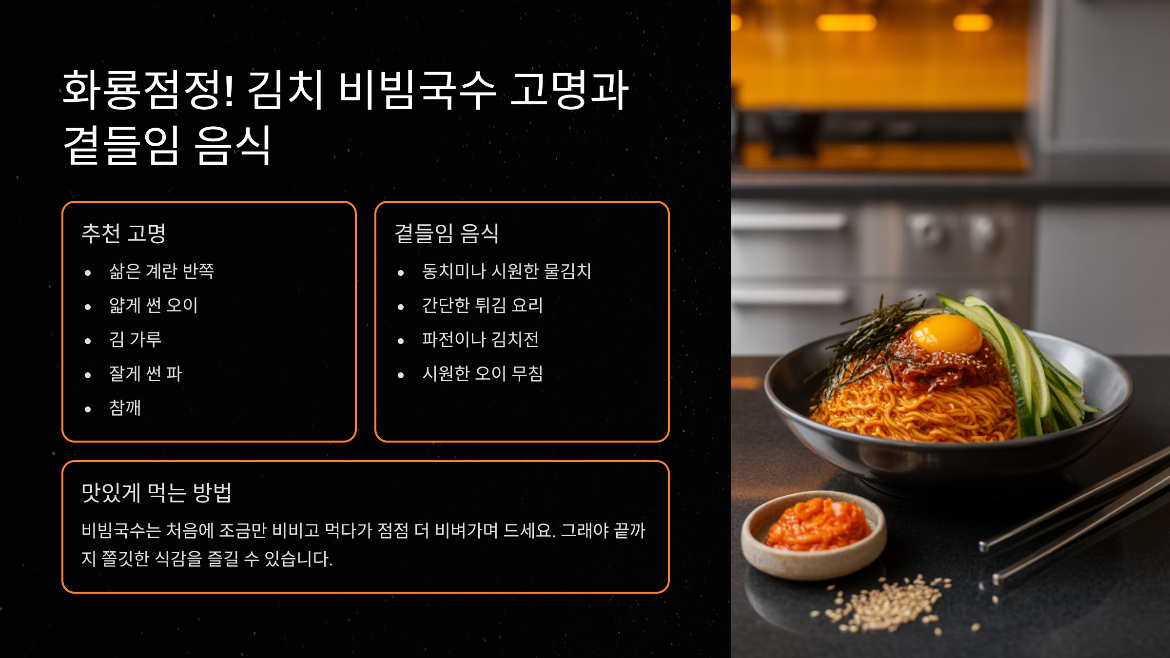 화룡점정! 김치 비빔국수 고명과 곁들임 음식