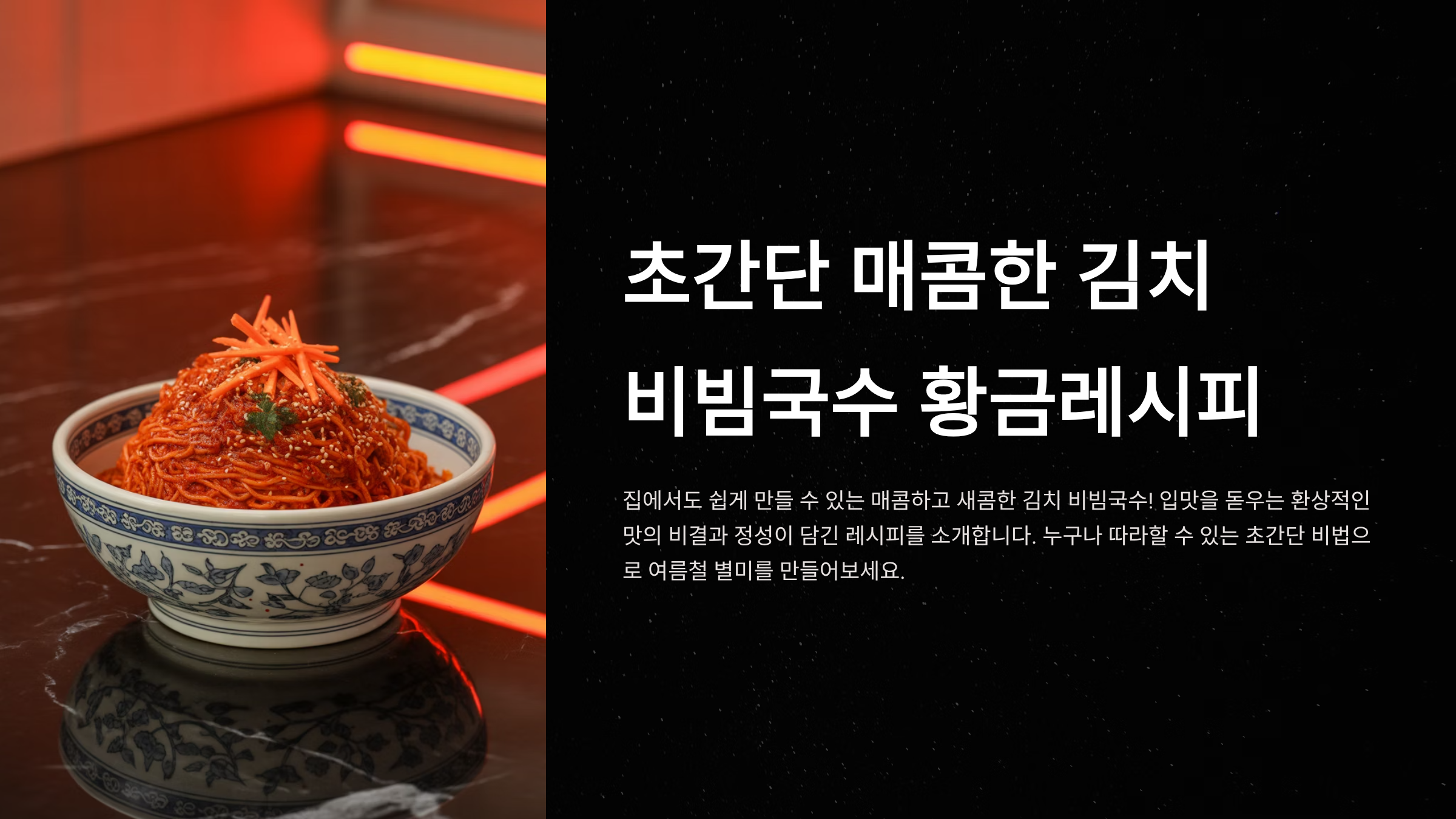 무더운 여름철, 입맛을 잃기 쉬울 때 생각나는 시원하고 **매콤한 김치 비빔국수**는 한국인의 대표적인 여름 별미입니다. 맵고 달고 새콤한 양념장에 쫄깃한 면발, 아삭한 김치의 조화는 그야말로 환상적이죠. 하지만 집에서 직접 만들려면 과연 식당에서 먹던 그 맛을 낼 수 있을지 걱정하는 분들이 많습니다. 비빔국수의 핵심은 바로 **양념장**에 있기 때문입니다.
