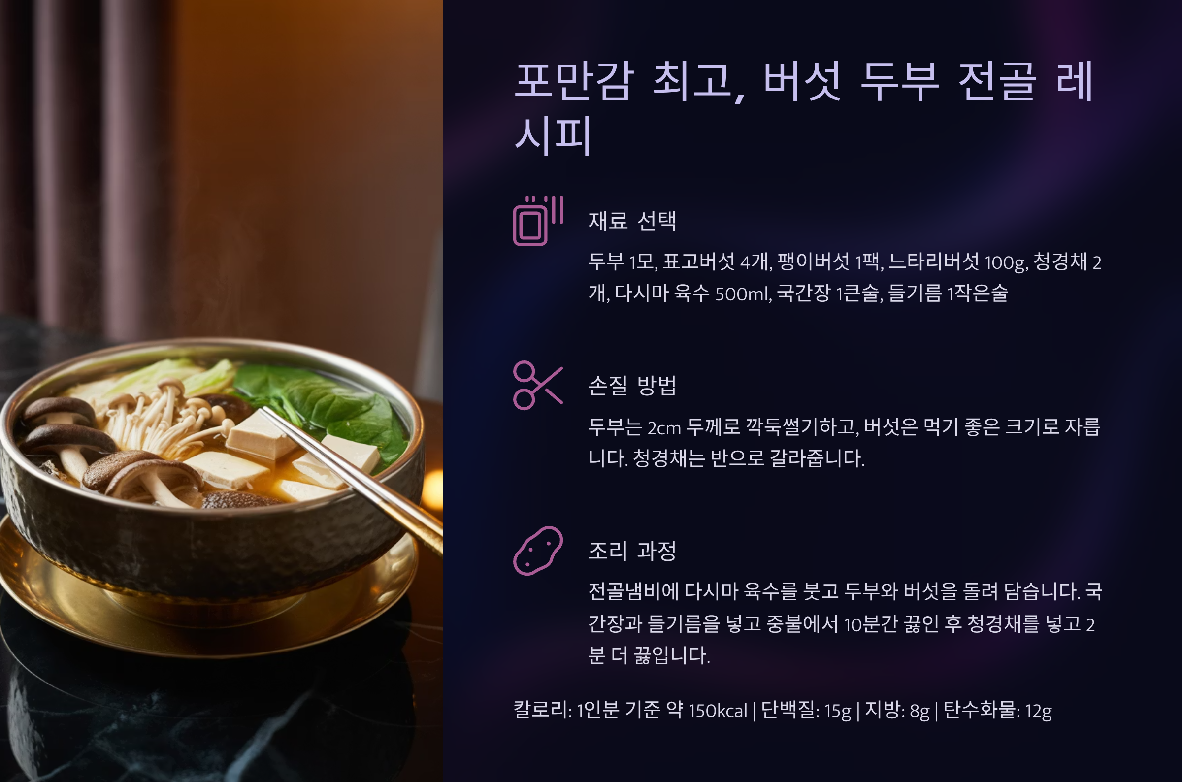 포만감 최고, 버섯 두부 전골 레시피