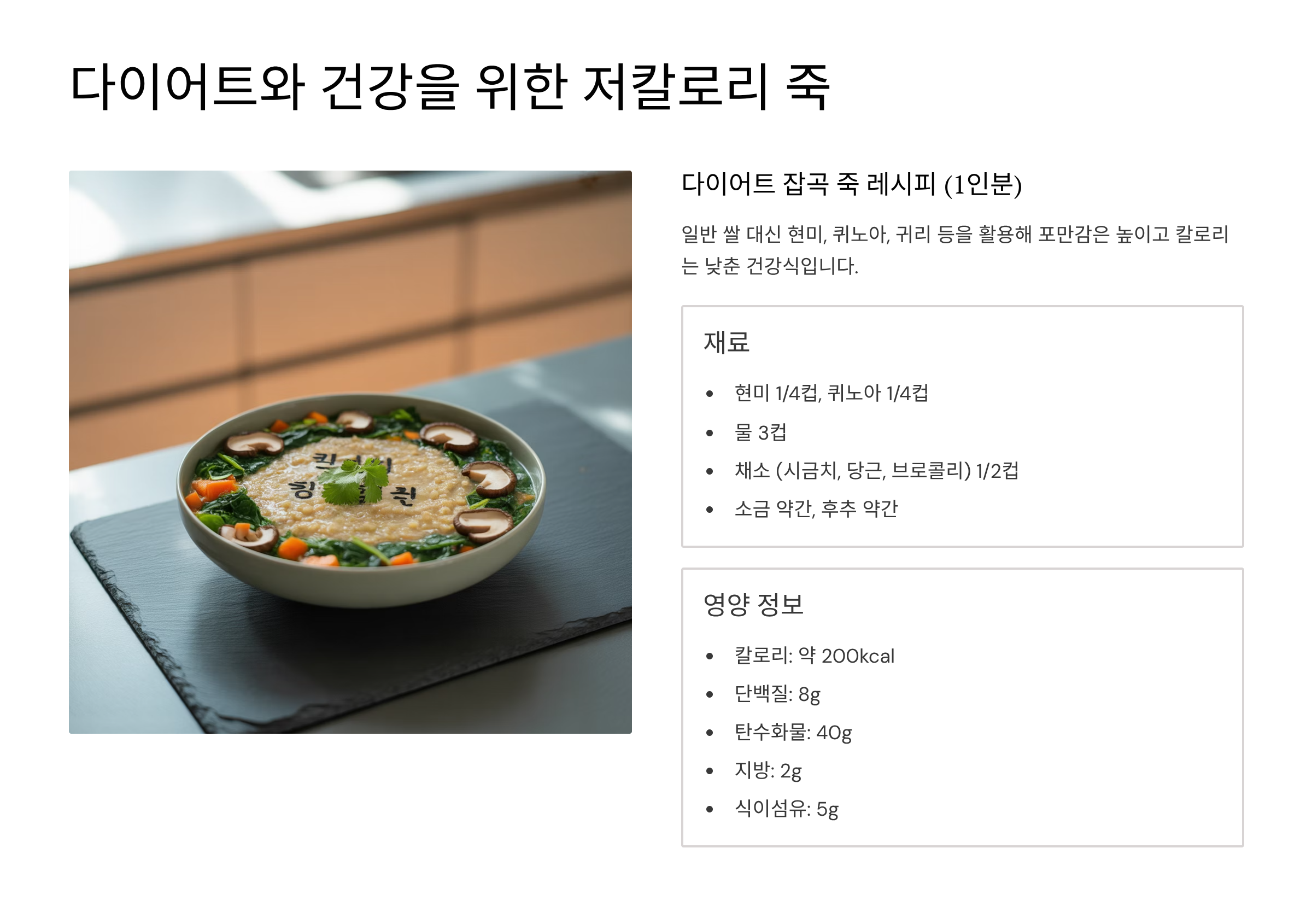 다이어트와 건강을 위한 저칼로리 죽