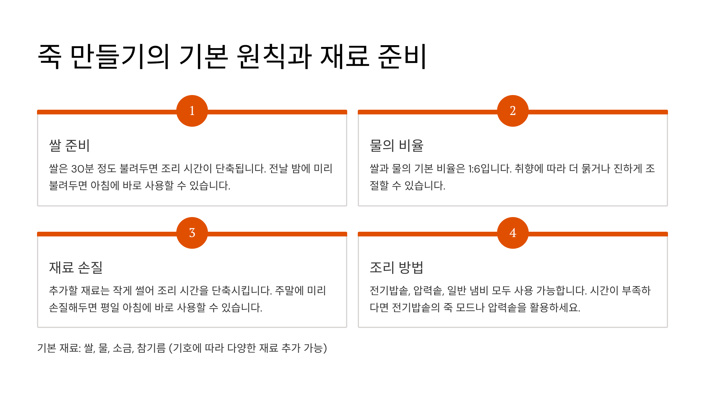 죽 만들기의 기본 원칙과 재료 준비